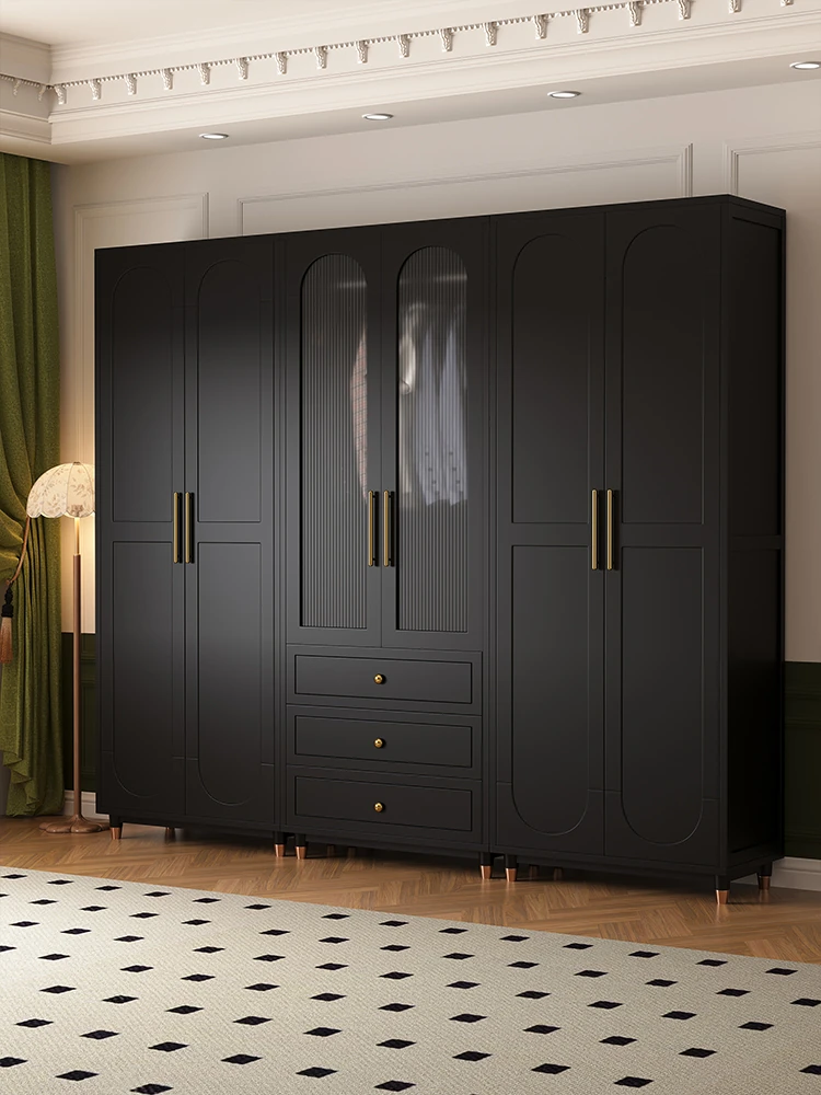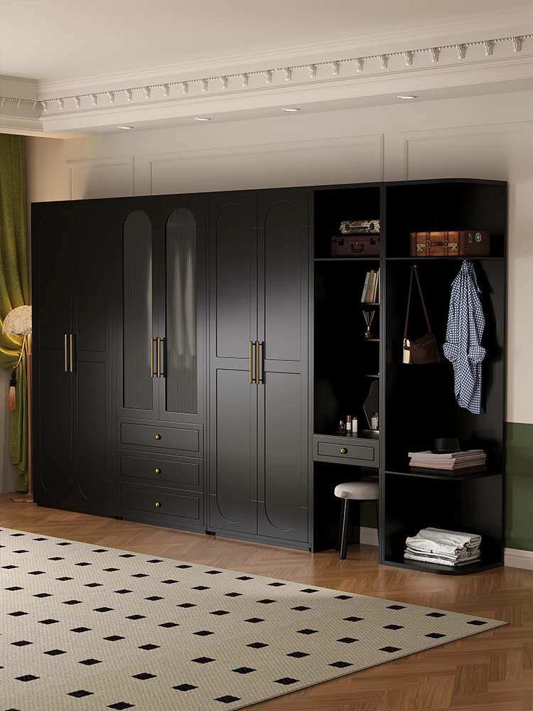 フレンチシックな高級感!実木製の衣類収納キャビネット - 大人向けのスタイリッシュなハンガーラック、アメリカンヴィンテージデザインの人気黒色コンビネーションコートクローゼット。おしゃれで機能的な収納を実現!