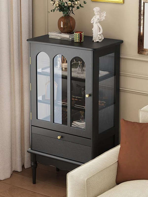 イーシャ フレンチレトロ 木製ガラスワインキャビネット 小型リビングルーム用 ウォールディスプレイキャビネット アメリカンスタイル 家庭用サイドキャビネット - おしゃれで実用的な収納スペースを提供!