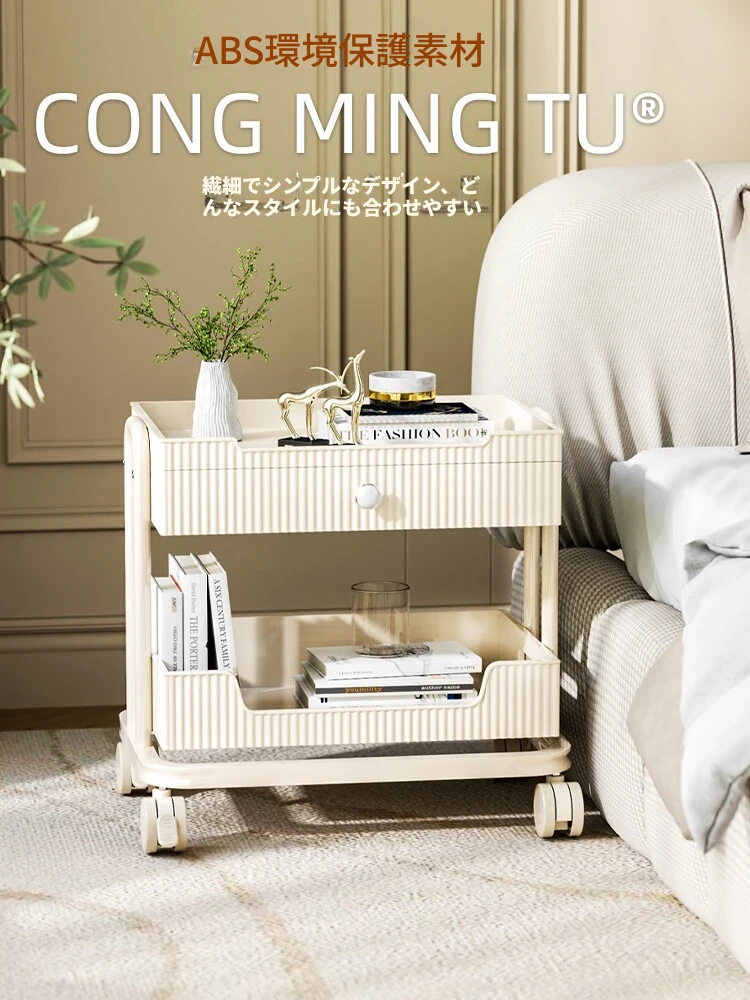移動可能なサイドテーブル|おしゃれなデザインで、リビングや寝室に最適!パソコンデスクやナイトテーブルとしても使える便利なアイテム。限られたスペースでも大活躍のコンパクトな収納付きサイドテーブルです。