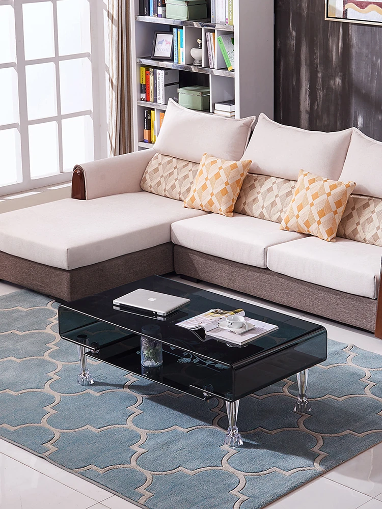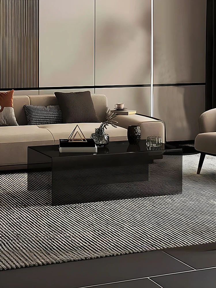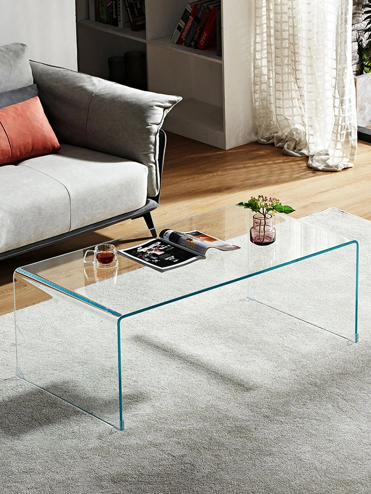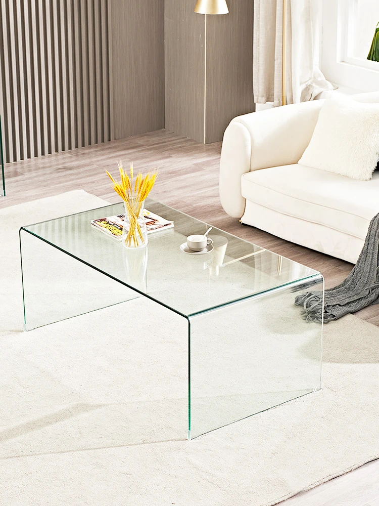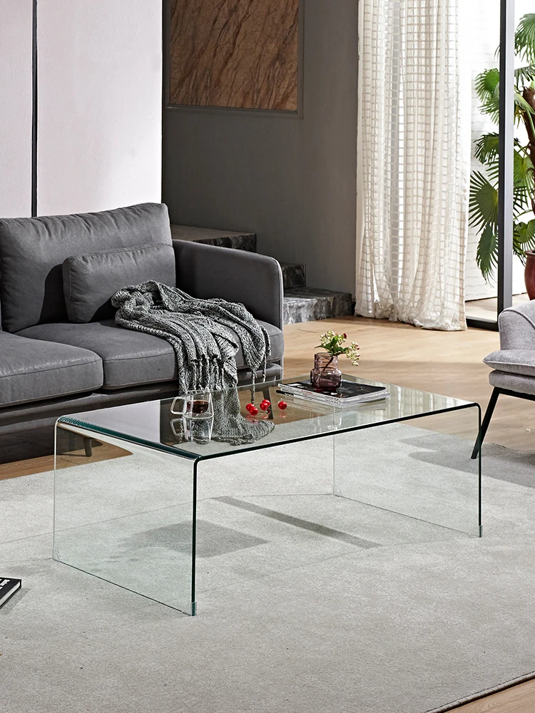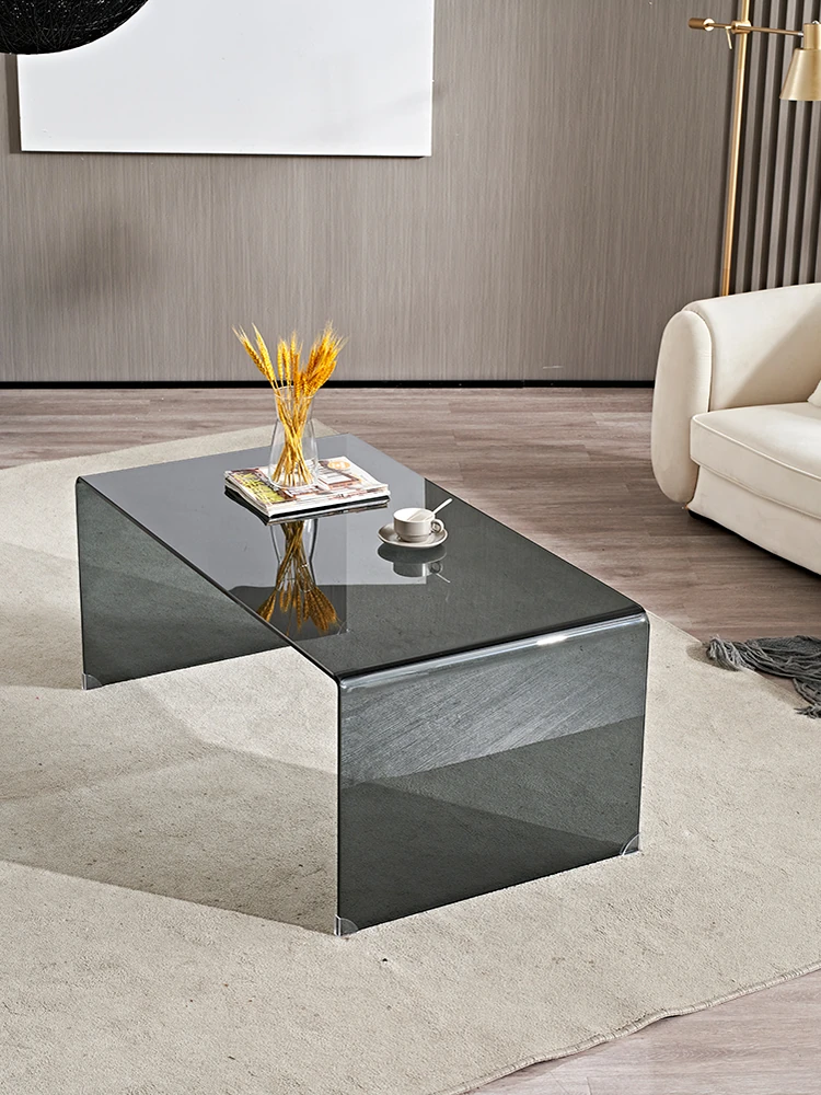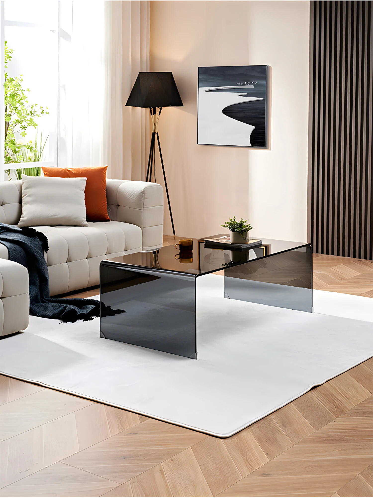 Modern Minimalist Glass Coffee Table for Small Spaces - Rectangular Creative Tea Table for Living Room and Office, Embracing Wabi-Sabi Aesthetics