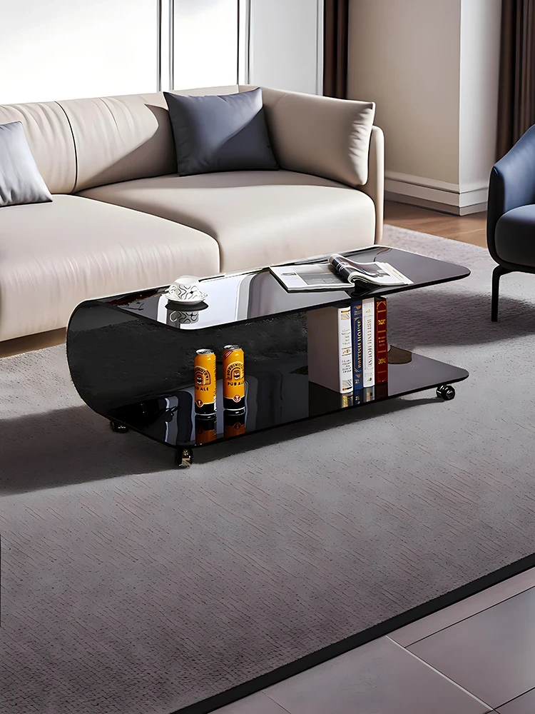 Trendy Scandinavian Minimalist Modern Creative Glass Coffee Table - Movable & Easy to Use, Perfect for Small Living Spaces and Unique Home Decor!