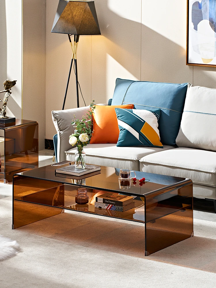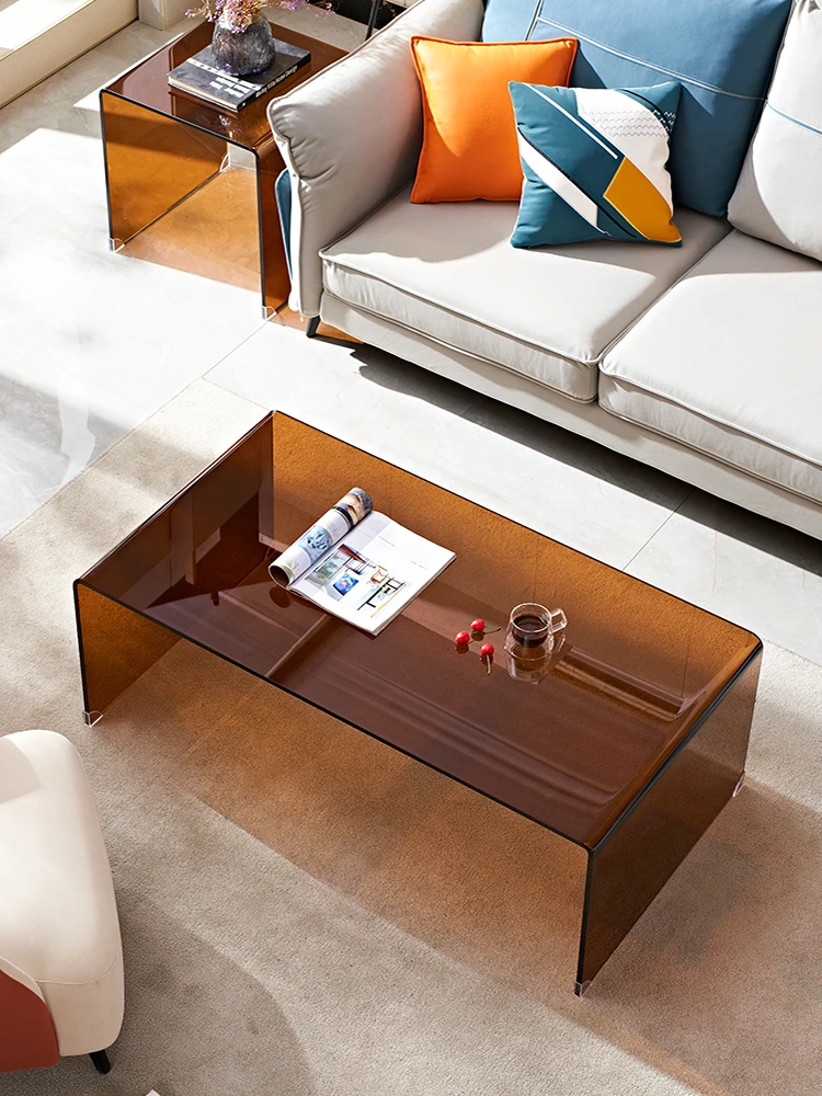 Brown Glass Scandinavian Minimalist Small Table for Living Room - Simple Tatami Bay Window Coffee Table, Modern Light Luxury Design