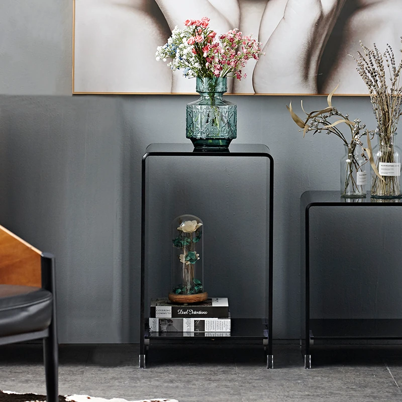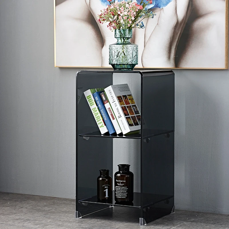 Elegant Italian Style Sofa Side Table and Cabinet - Modern Minimalist Glass Corner Table for Living Room, Chic TV Stand and Nightstand Combo