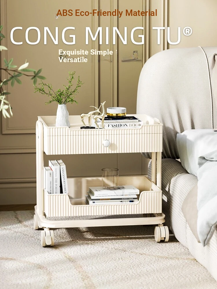 Creamy Wind Minimalist Modern Creative Bedside Rolling Cart Small Table for Living Room - Versatile and Stylish Coffee Table for Home Use