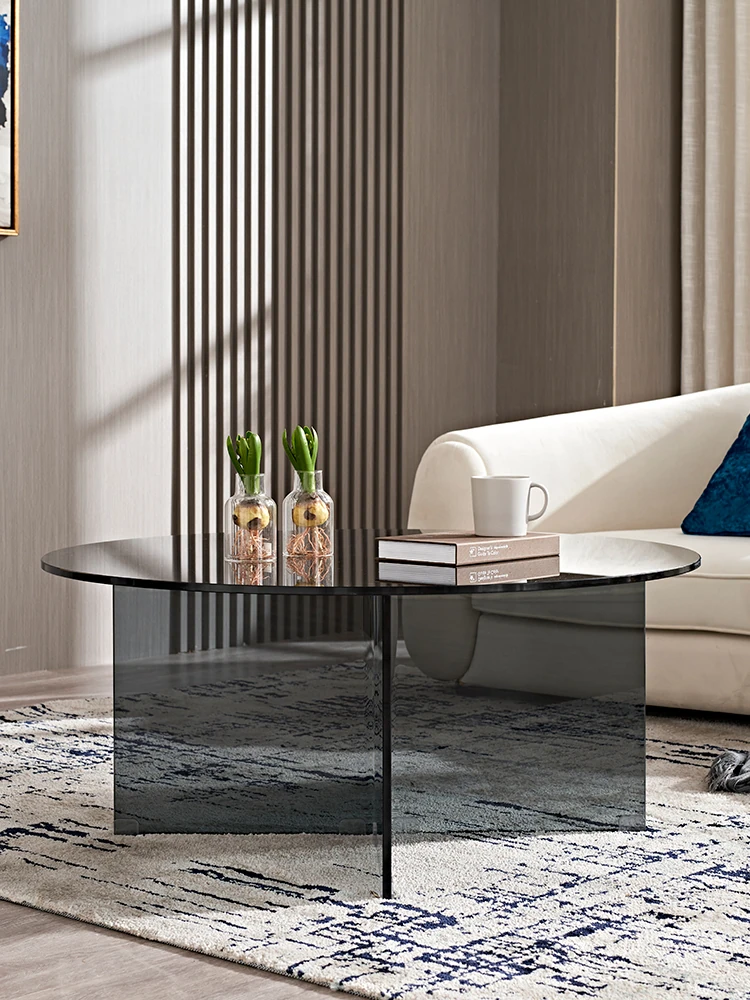 2023 New Creative Round Tempered Glass Coffee Table - Scandinavian Designer Minimalist Style for Small Apartments and Offices