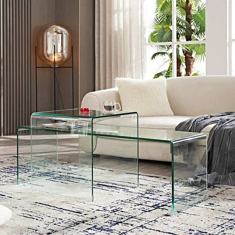Stylish Minimalist Clear Glass Coffee Table and TV Stand Set for Small Living Rooms - Perfect for Modern Homes with Limited Space