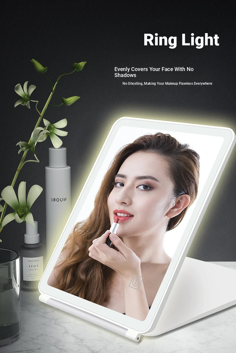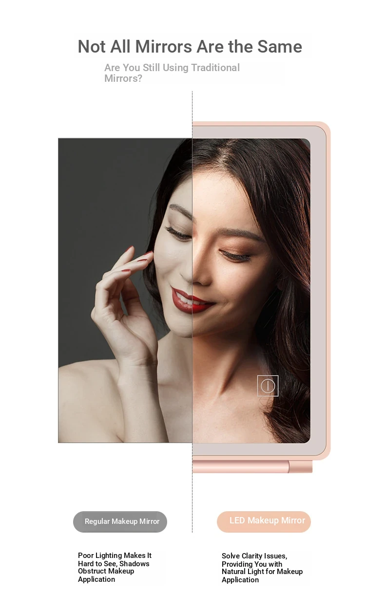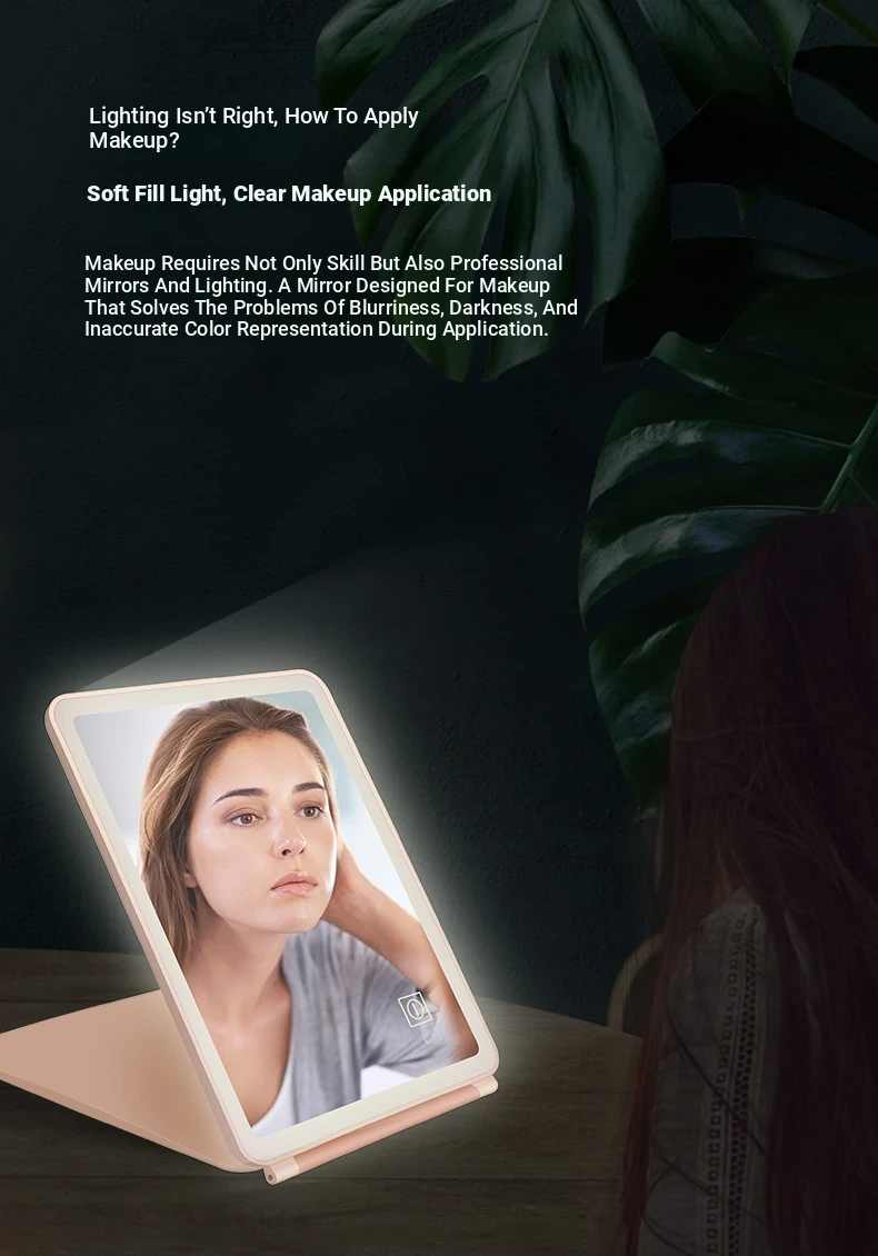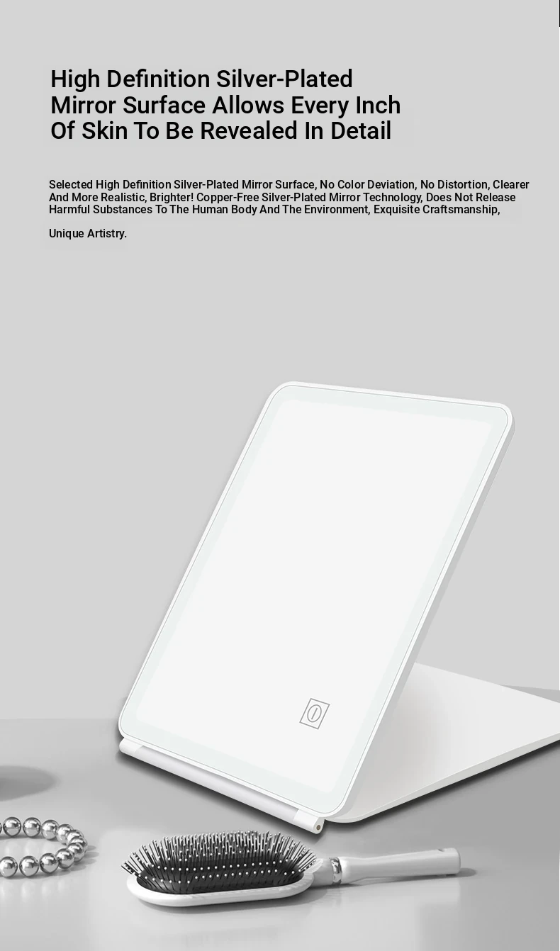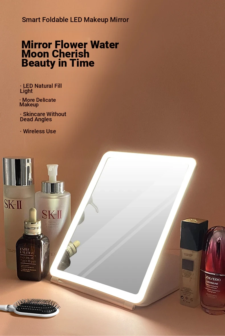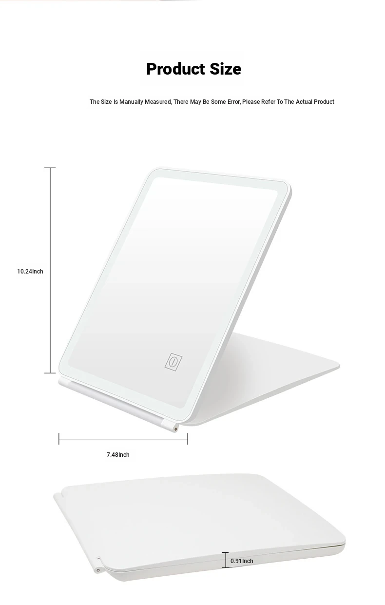 LED Smart Makeup Mirror with Light - Compact Folding Desktop Mirror for Men, Perfect for Students and Dorms, Ideal for Grooming and Beauty Applications.