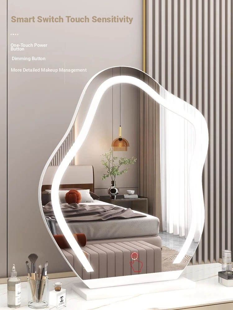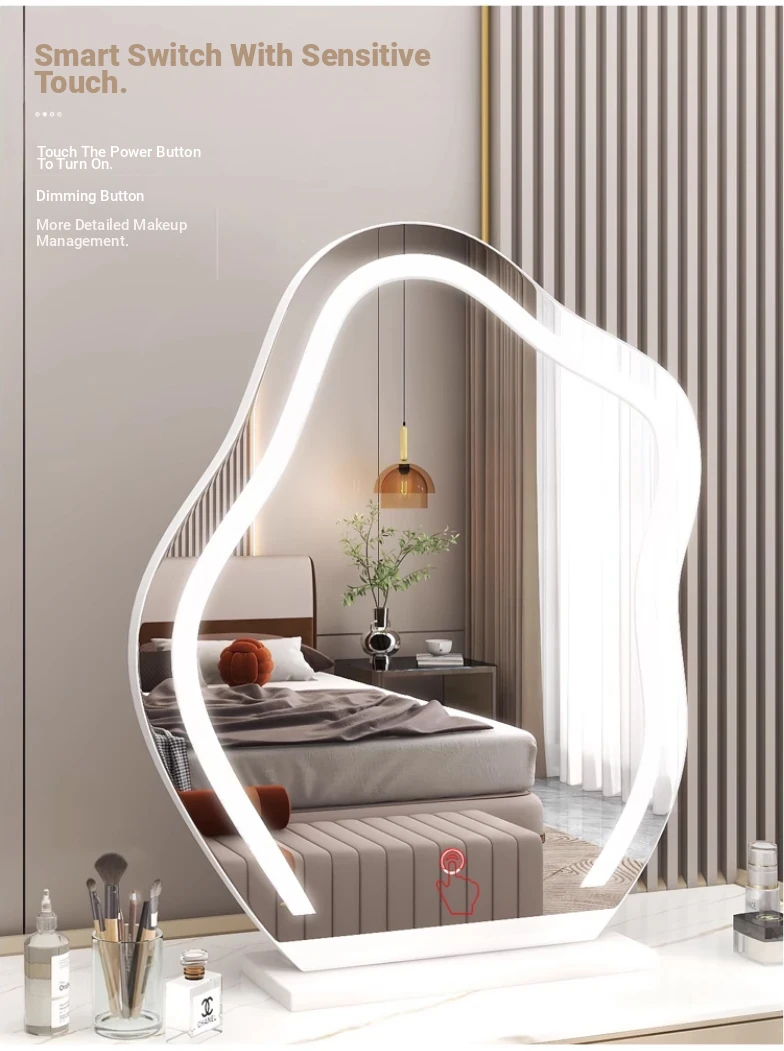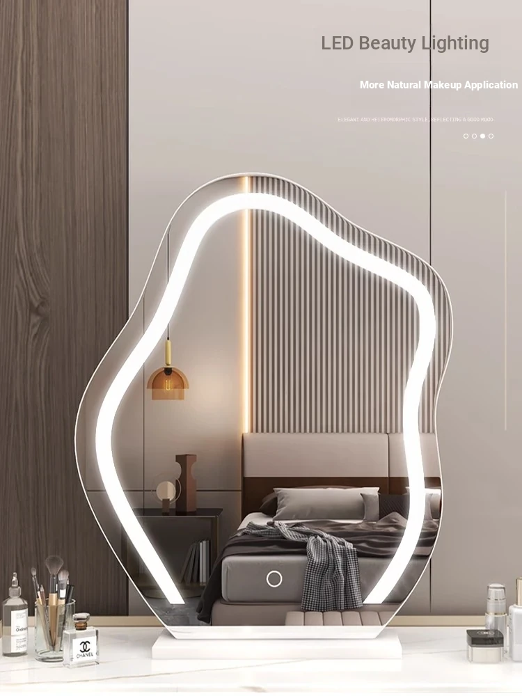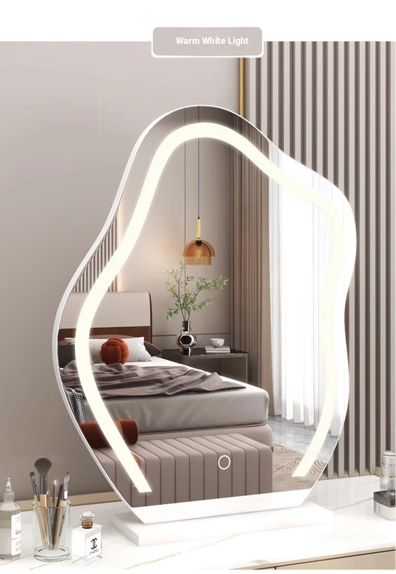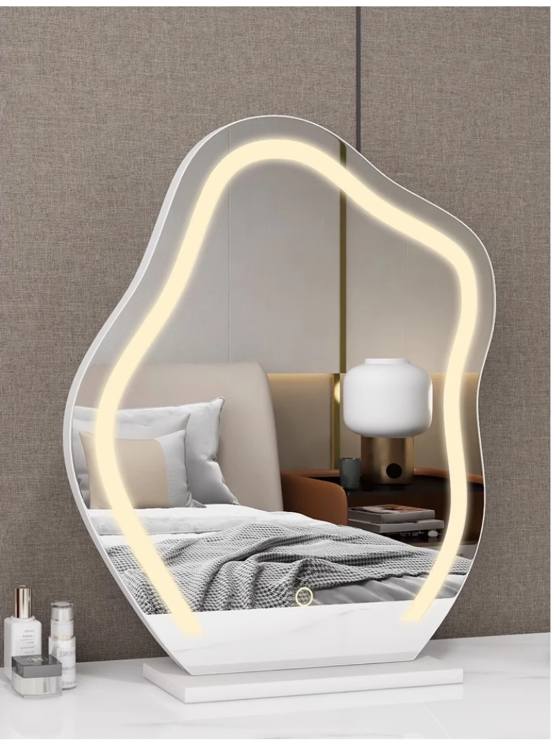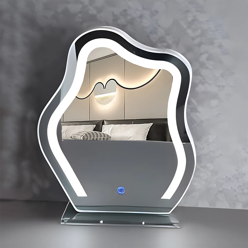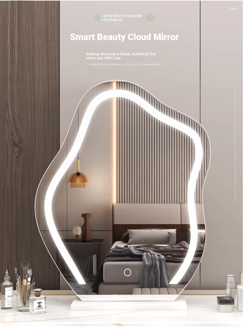 Trendy Cloud Shaped LED Makeup Mirror - Elegant Desktop Vanity Mirror with Smart Lighting for Your Bedroom Dressing Table