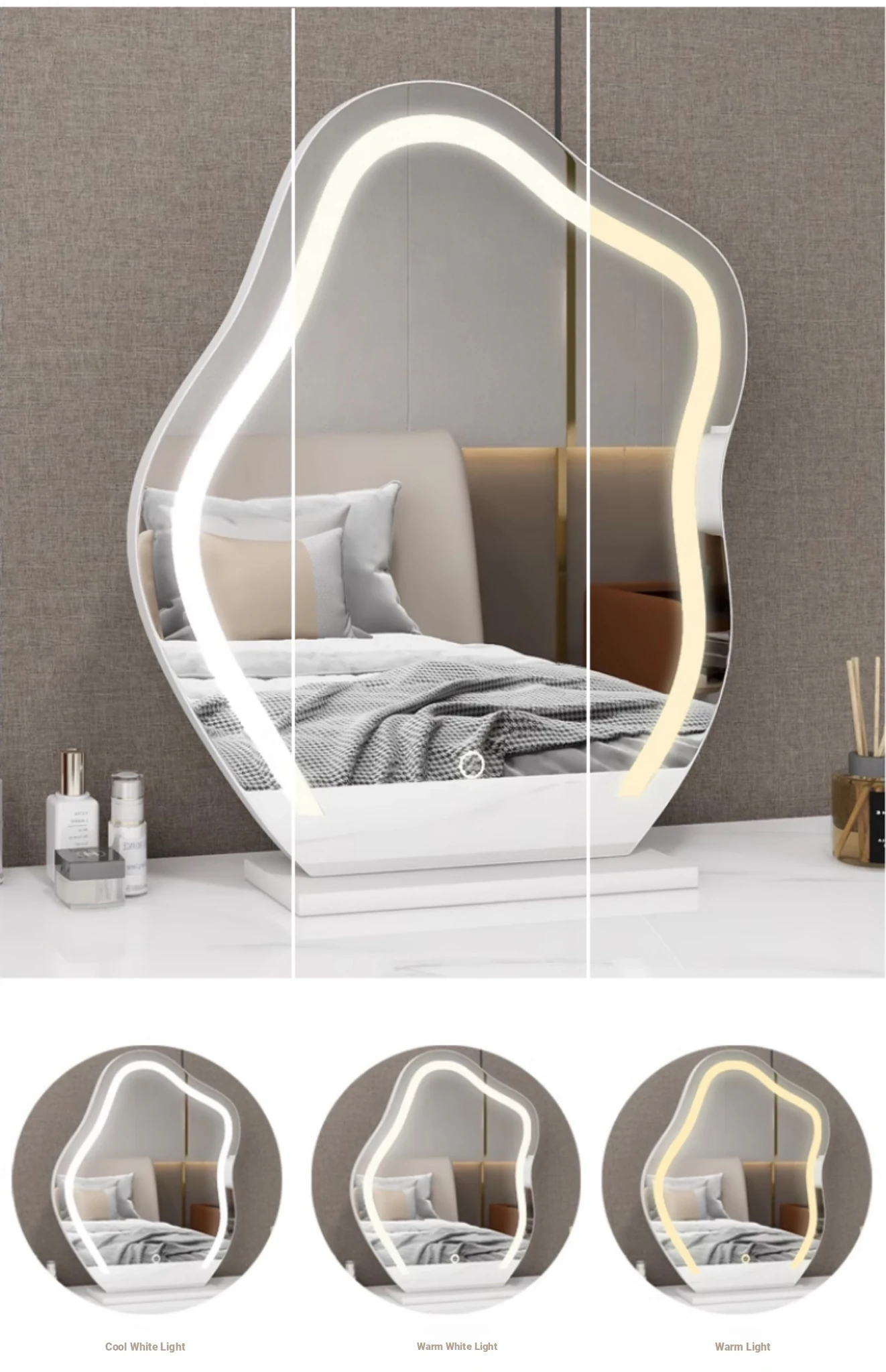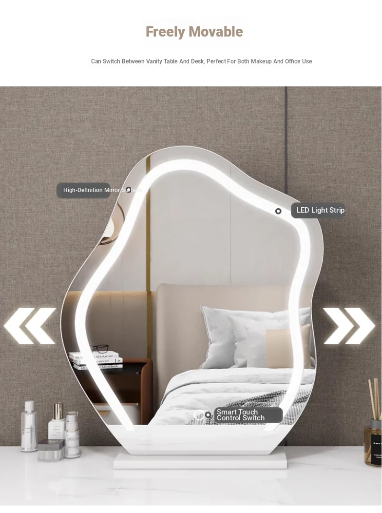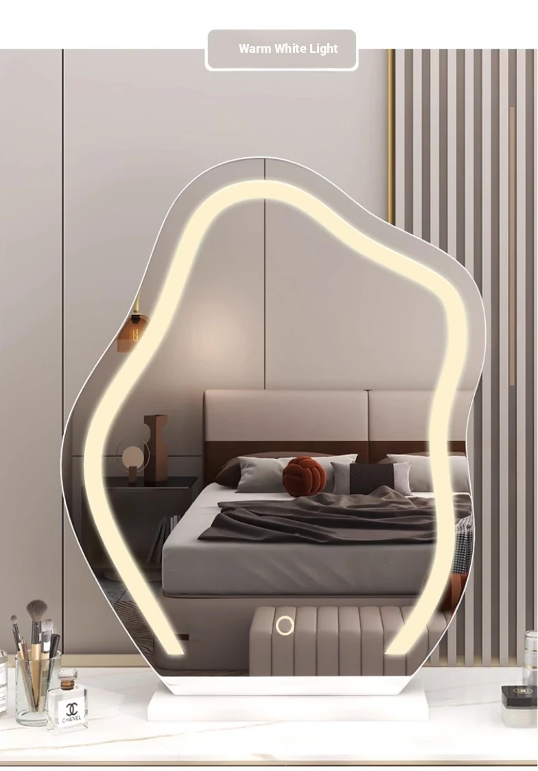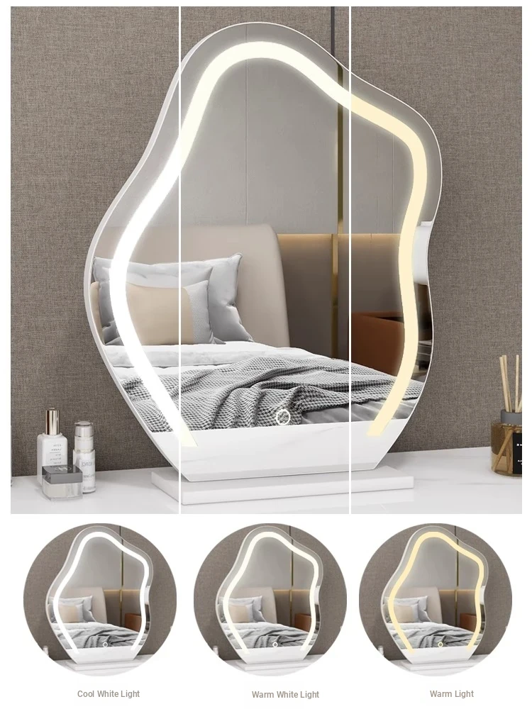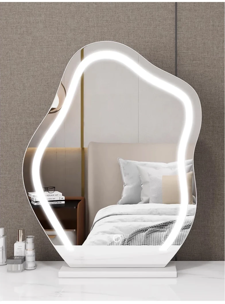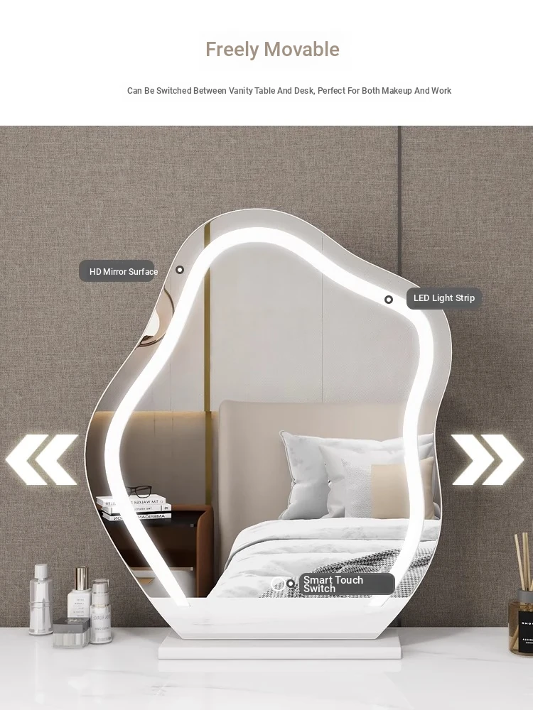Trendy Cloud Shaped LED Makeup Mirror - Elegant Desktop Vanity Mirror with Smart Lighting for Your Bedroom Dressing Table