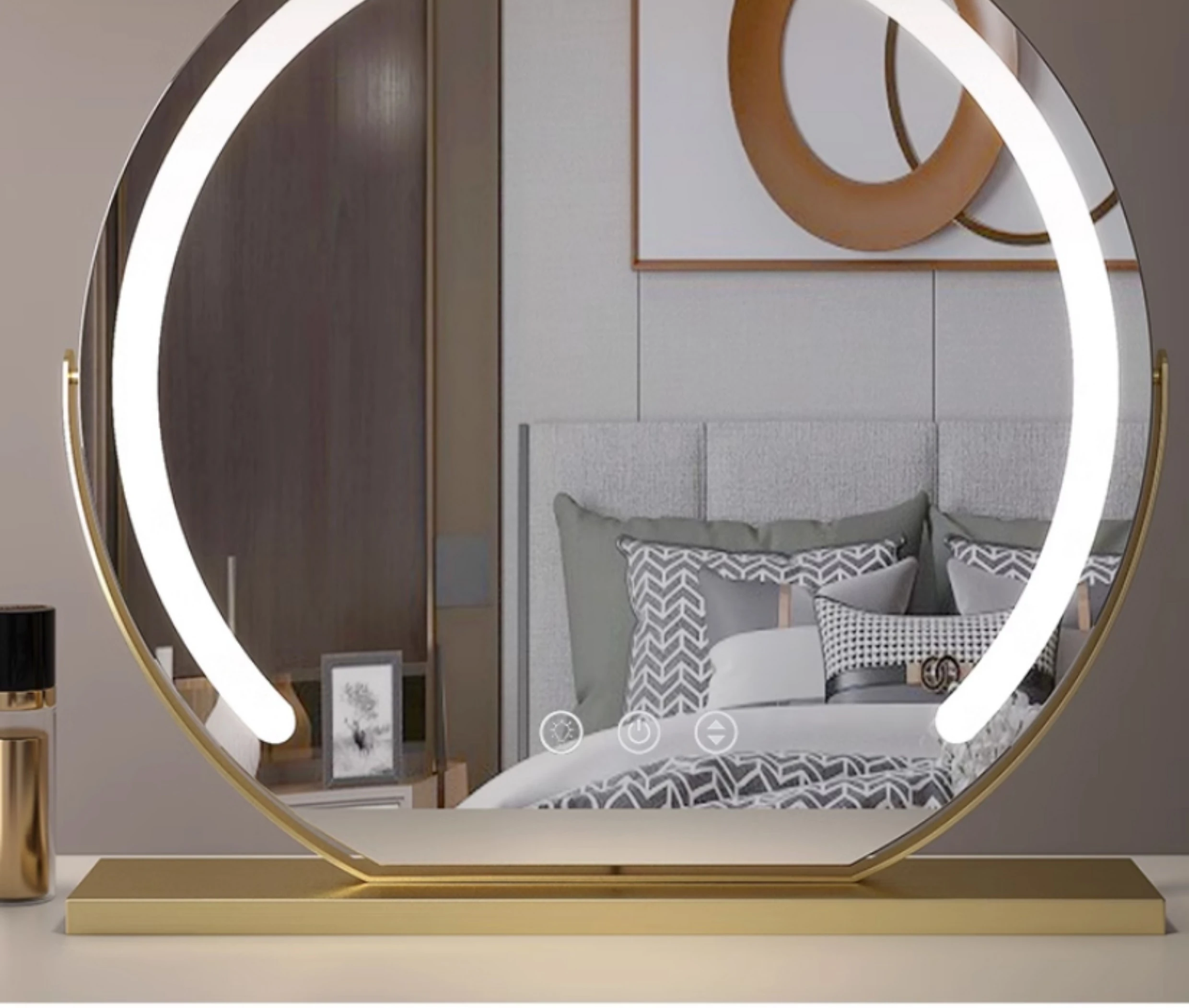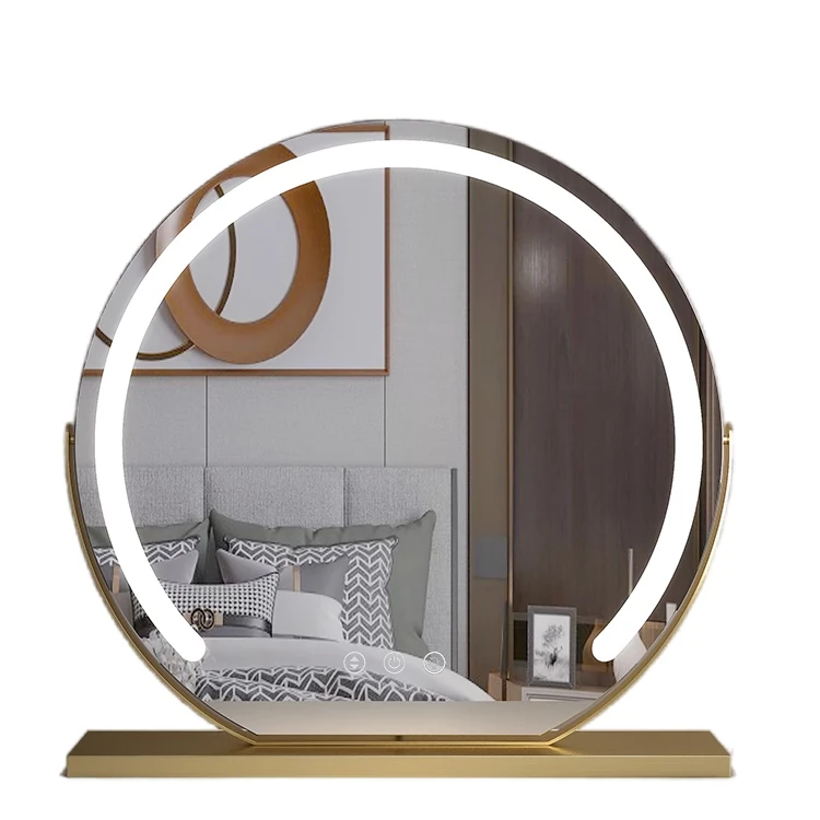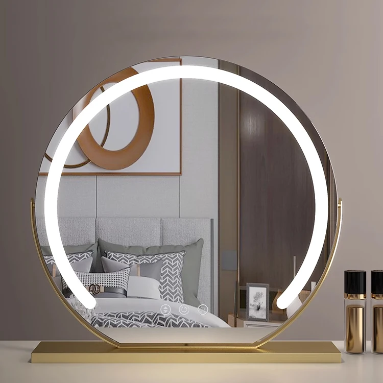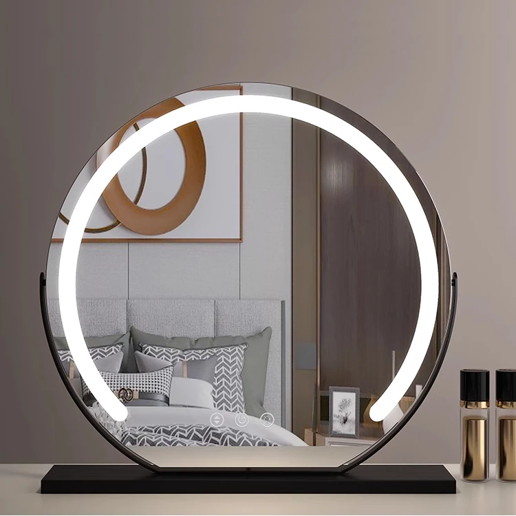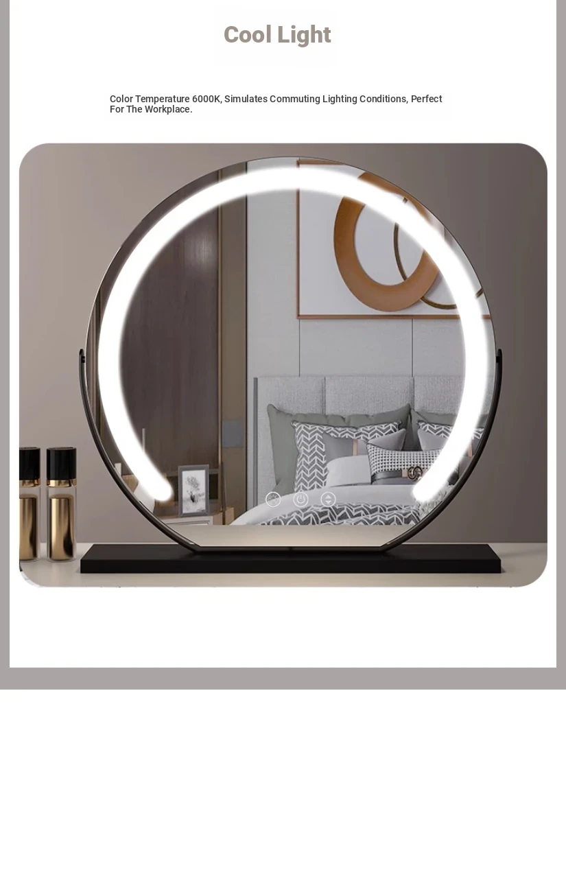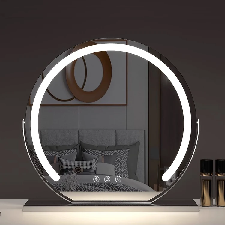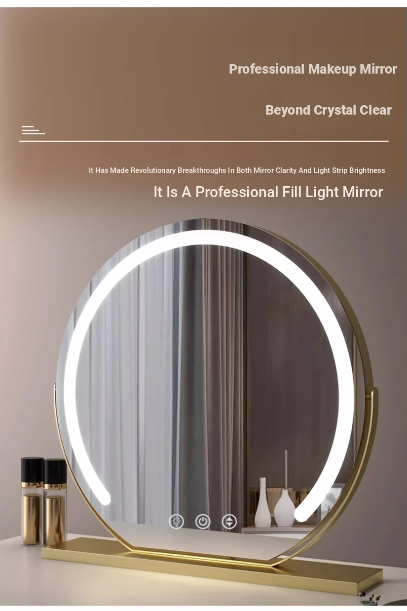 Trendy Smart LED Makeup Mirror - Half-Circle Design with Adjustable Lighting for Vanity Desk, Rotatable, Perfect for Your Bedroom!