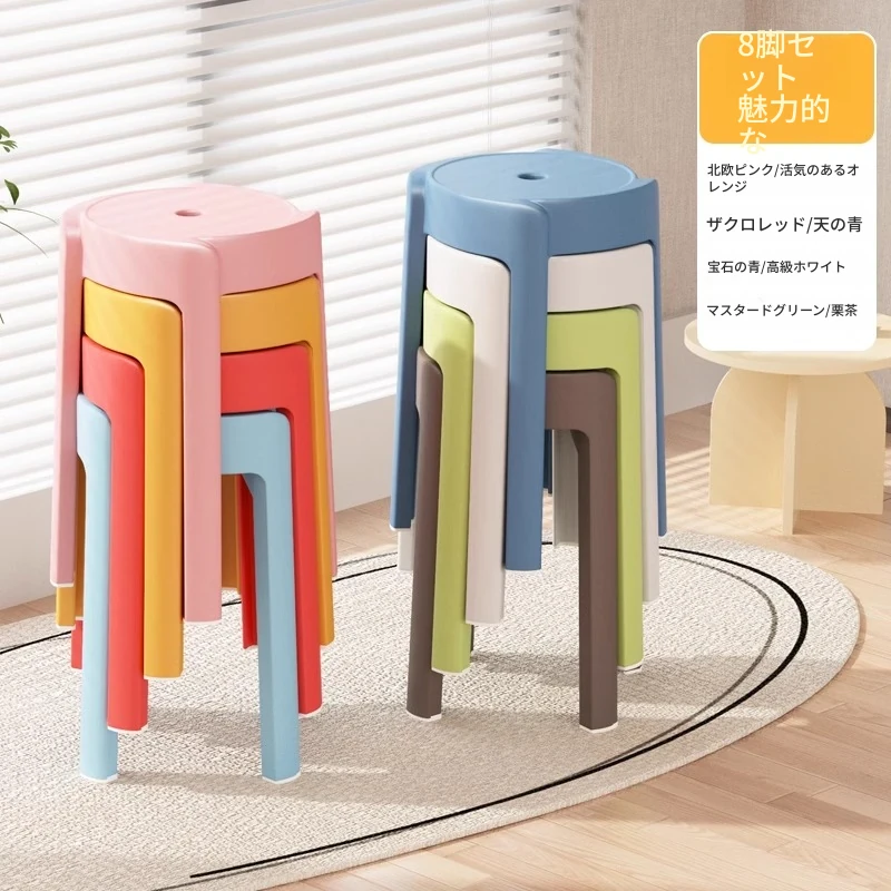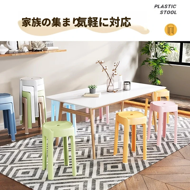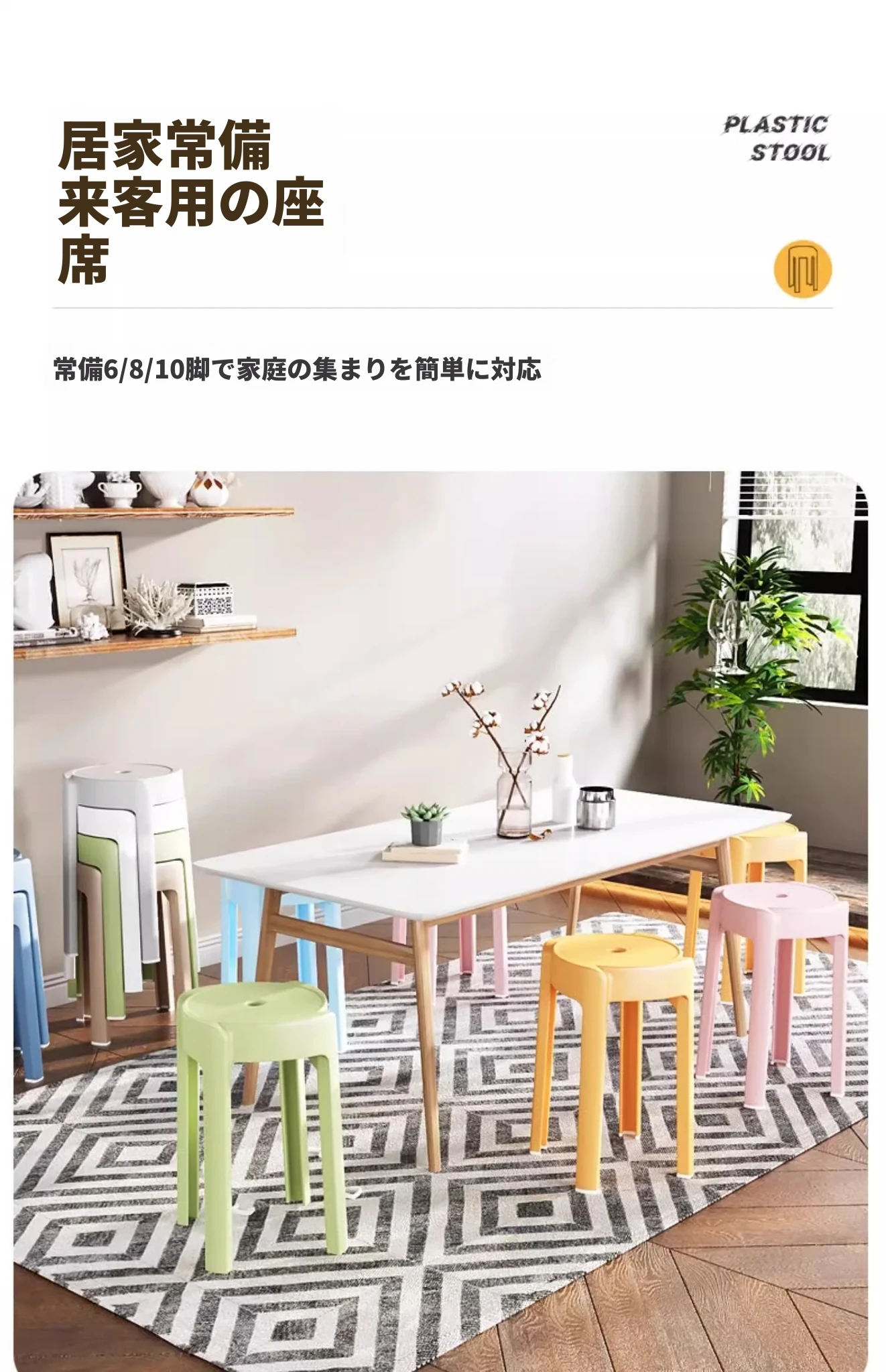 スタイリッシュで丈夫なプラスチック製スタッキングスツール - 家庭用、厚手で高級感漂うデザイン、大人向けの特厚タイプ、シンプルな美しさを兼ね備えた便利な予備椅子!