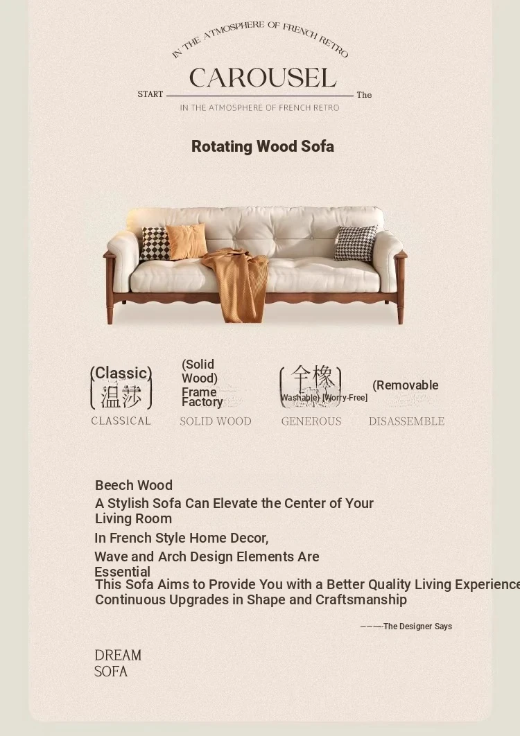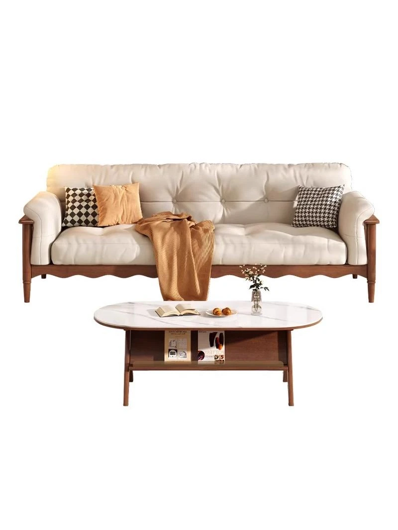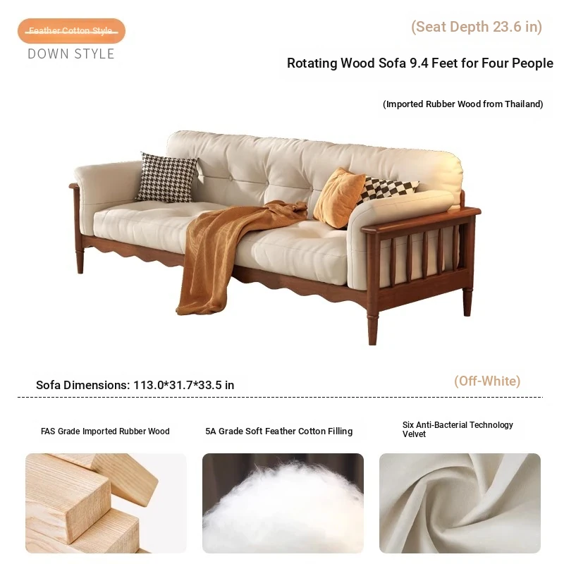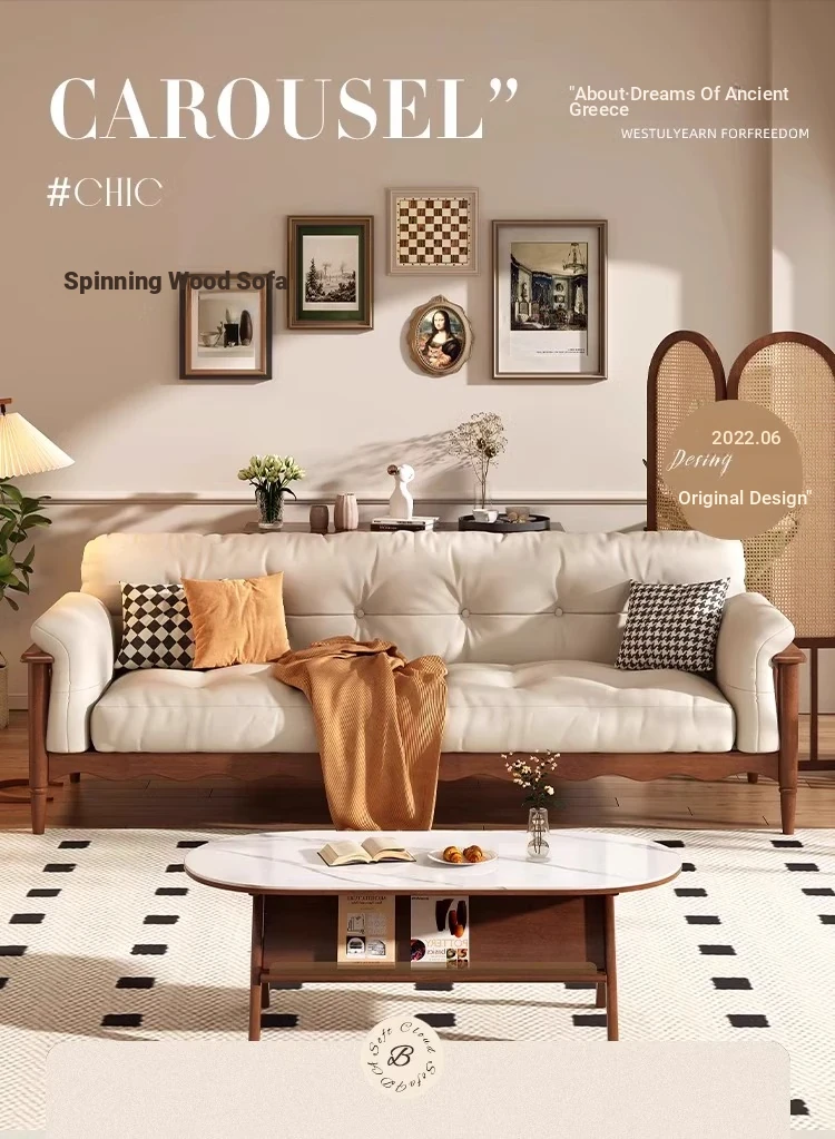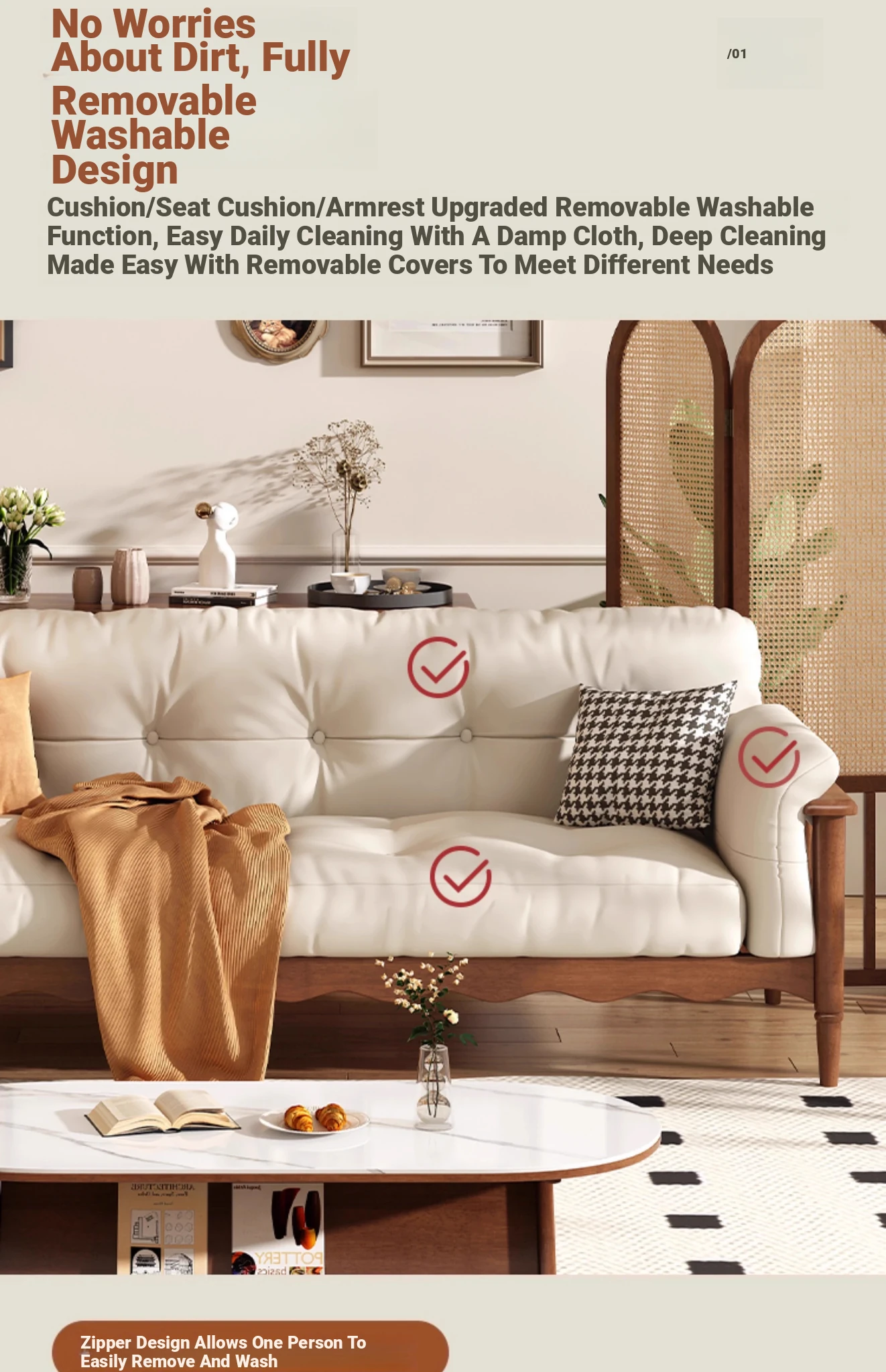 フランス風の無垢材ソファ、レトロスタイルの小型リビングに最適!冬も夏も快適に使える3人掛けの和風ヴィンテージ布製ソファ。おしゃれで機能的な空間を演出します。