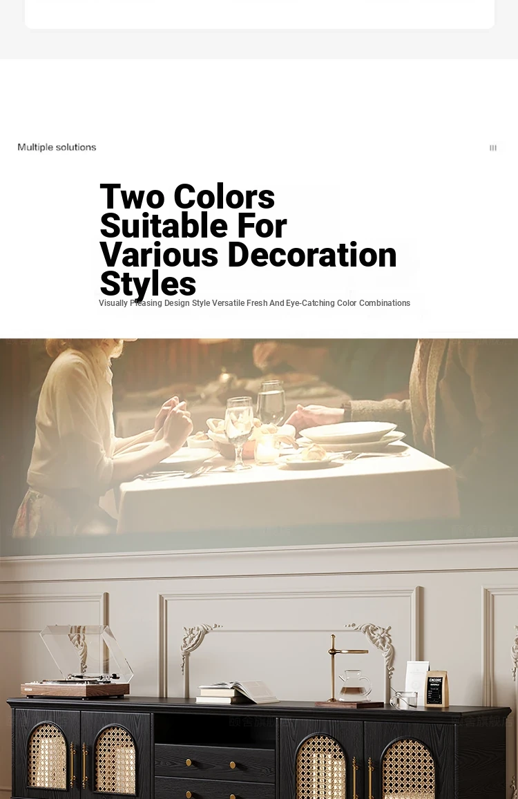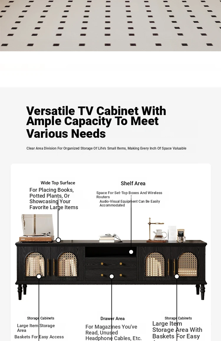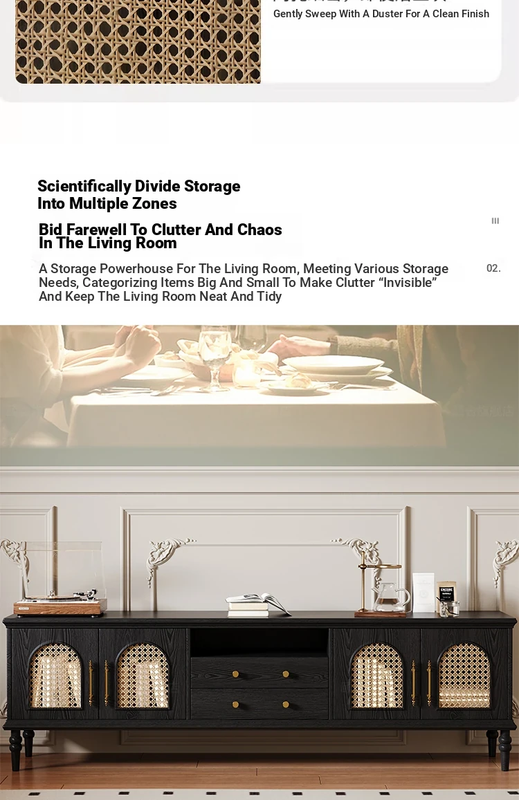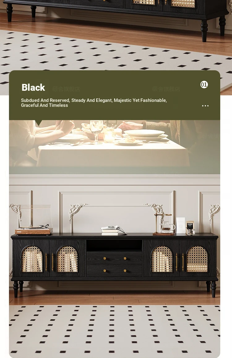 Solid Wood rattan TV cabinet 70.87 ins + high and low cabinet [black] Ten years warranty