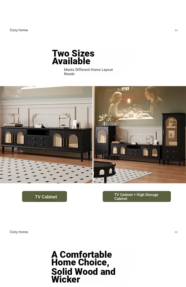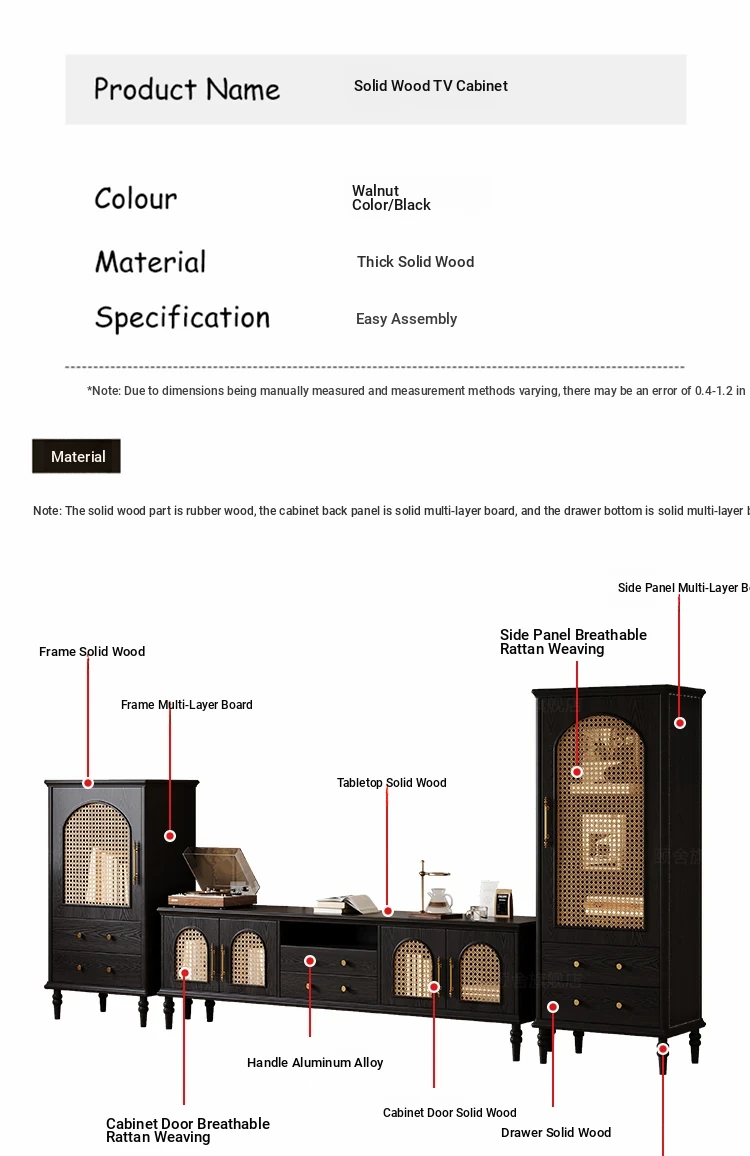 Solid Wood rattan TV Cabinet 78.74 in + high and low cabinet [black] 10 years warranty