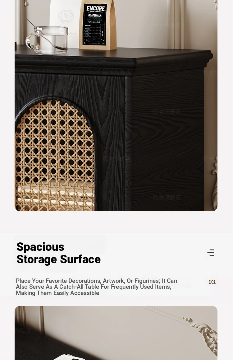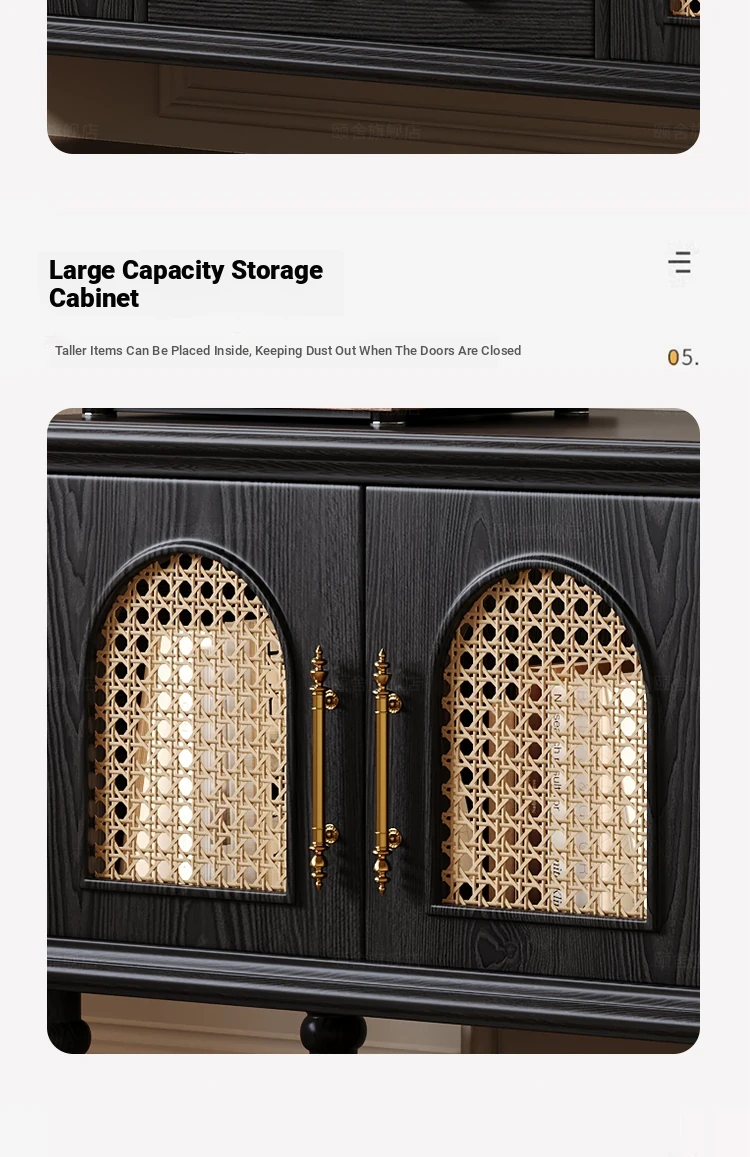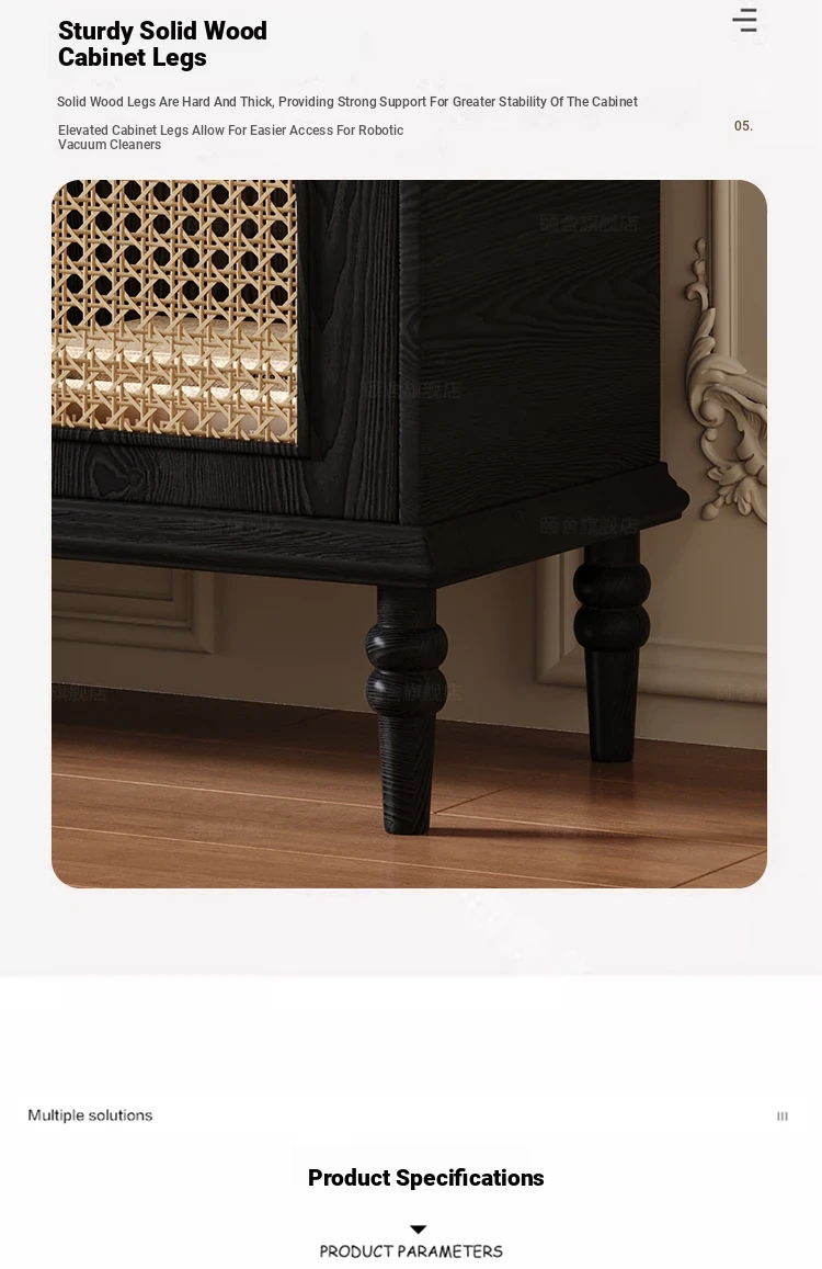 Solid Wood rattan low cabinet [black] Ten years warranty