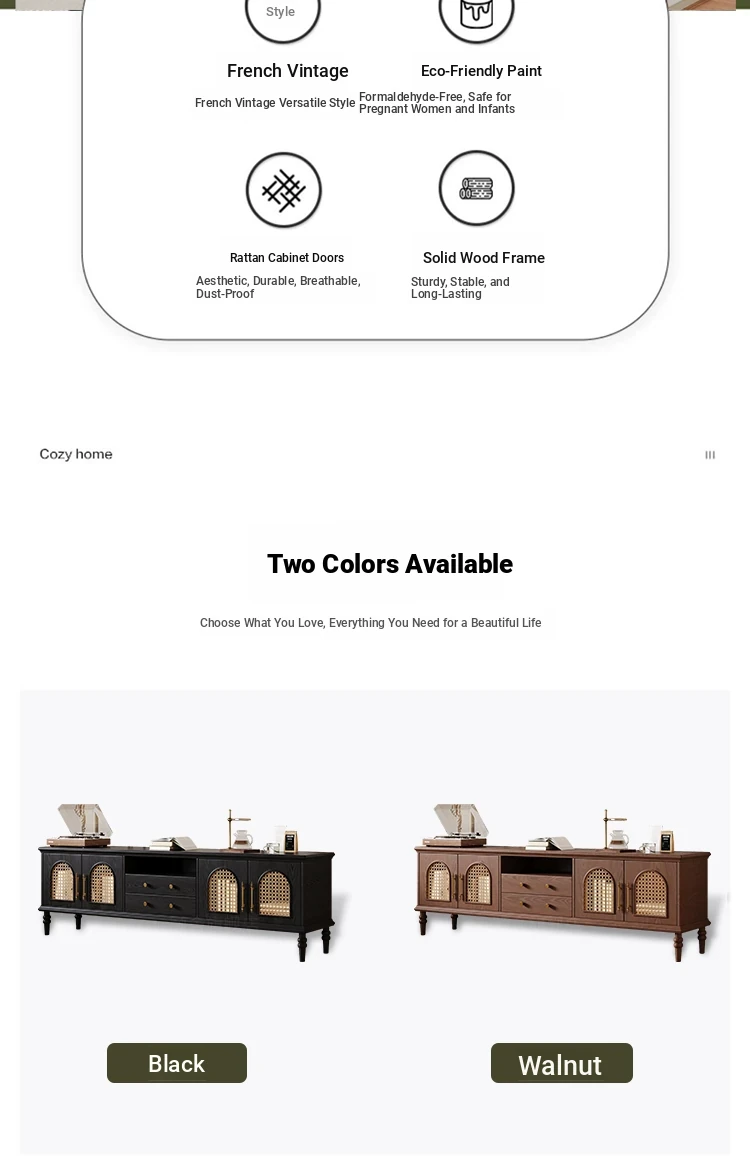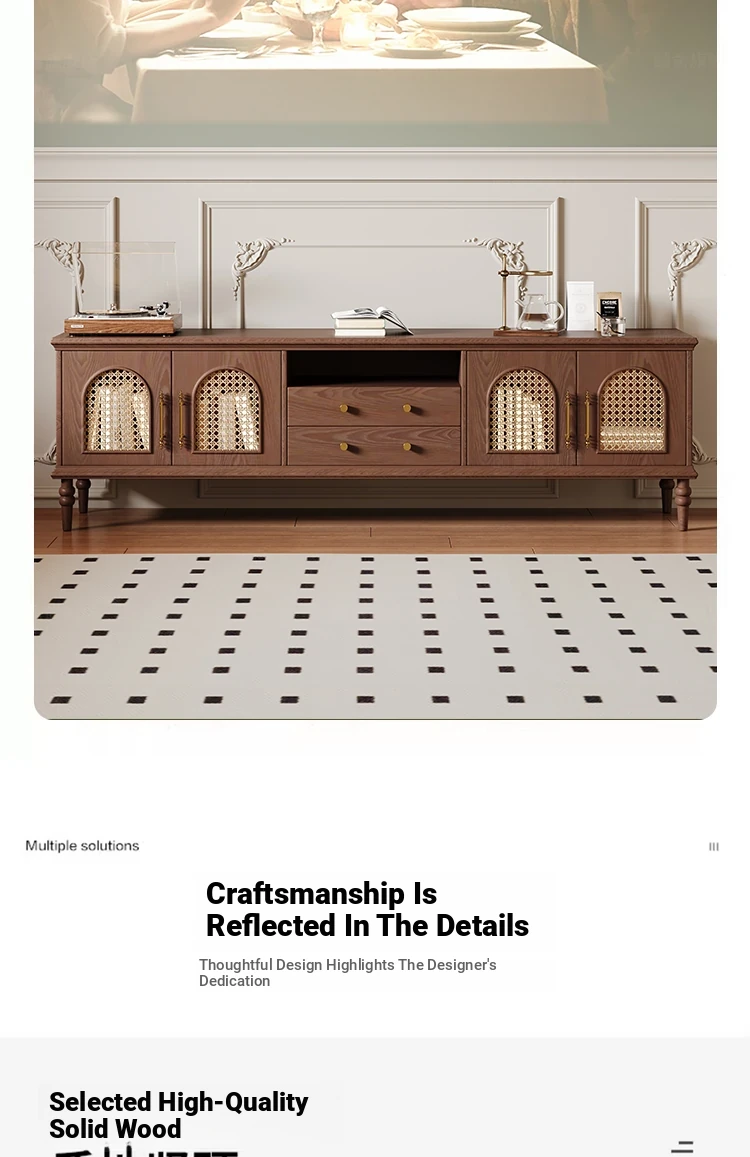 Solid Wood rattan TV Cabinet 78.74 in [walnut color] 10 years warranty