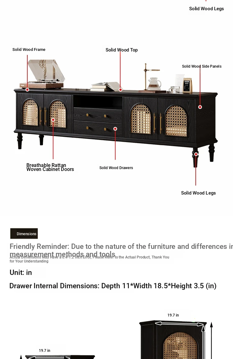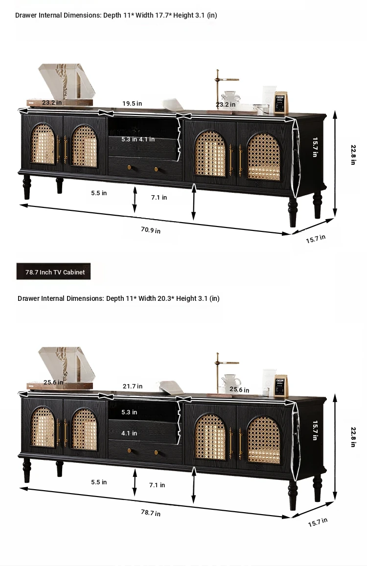 Solid Wood rattan TV Cabinet 78.74 in [black] Ten years warranty