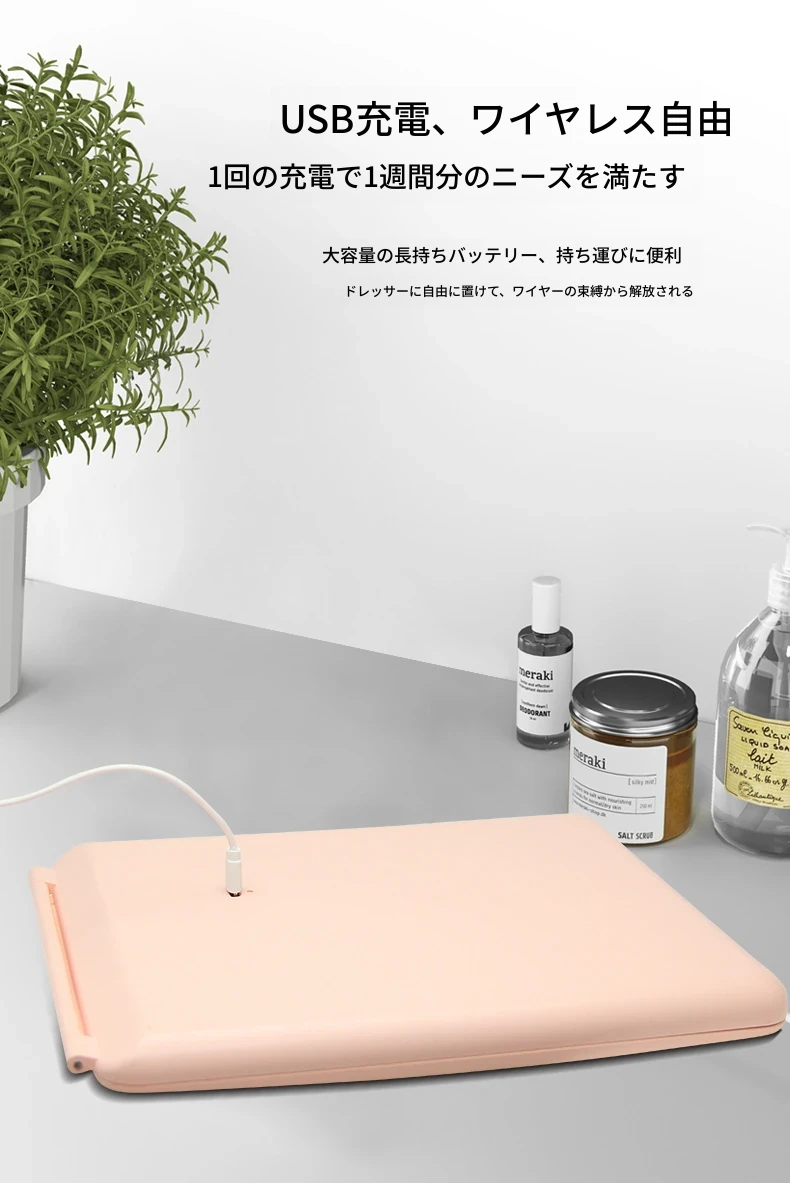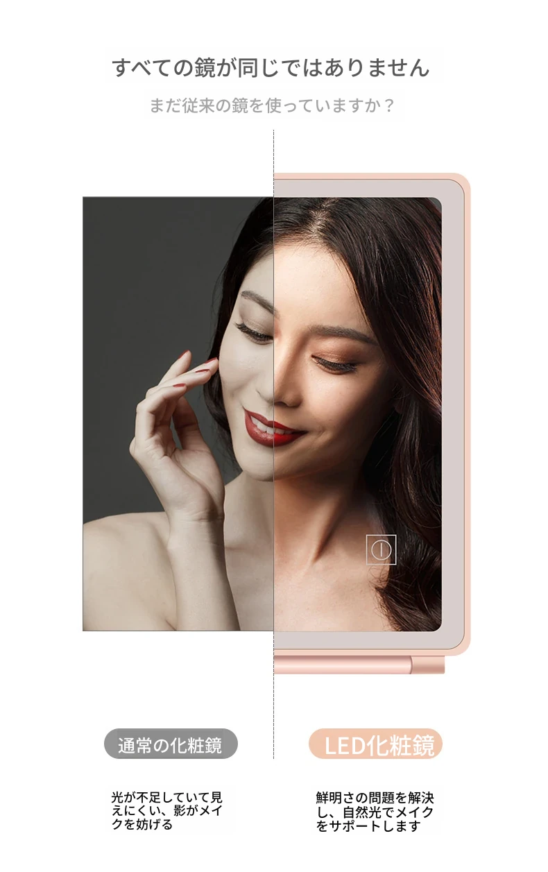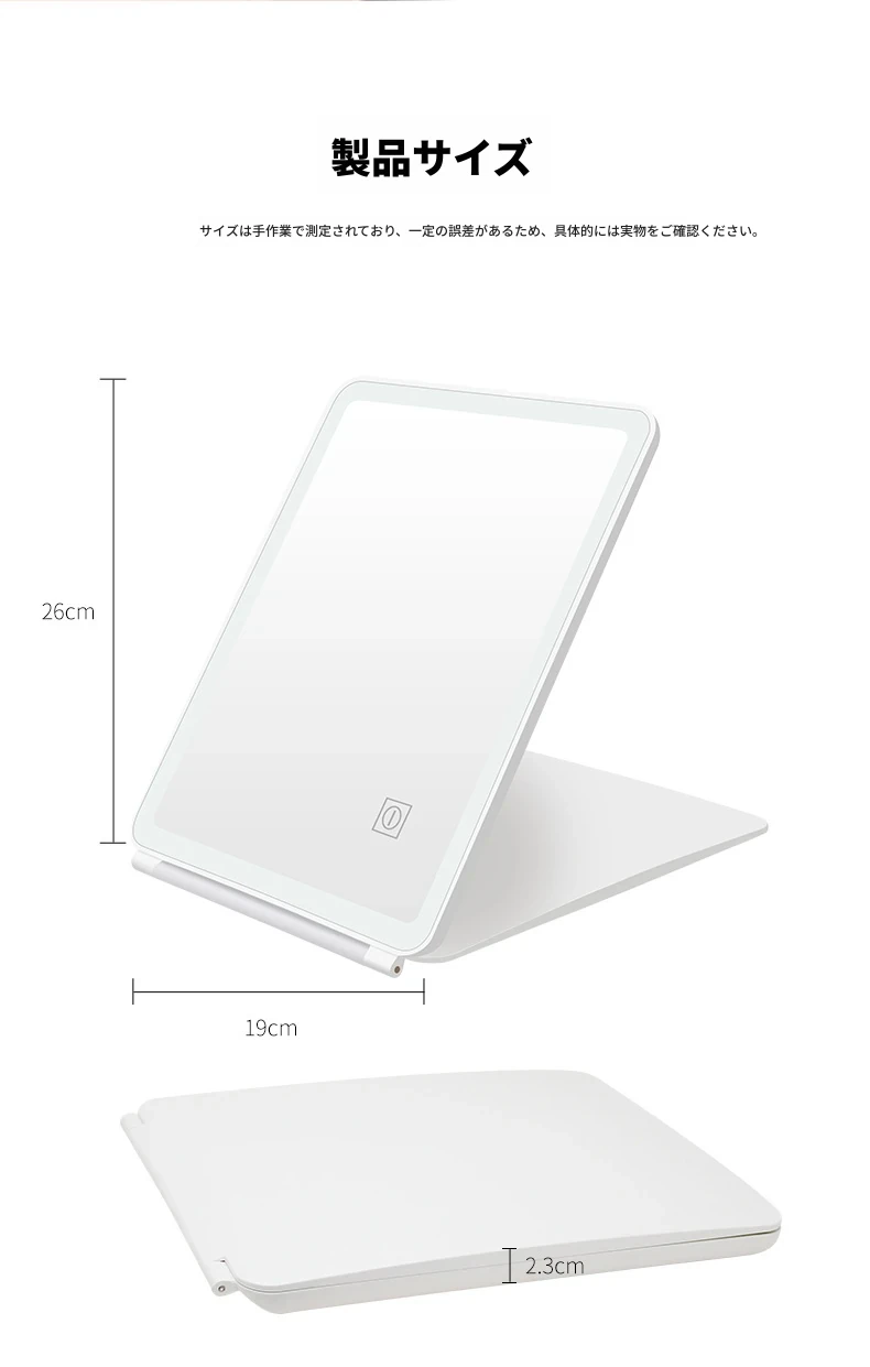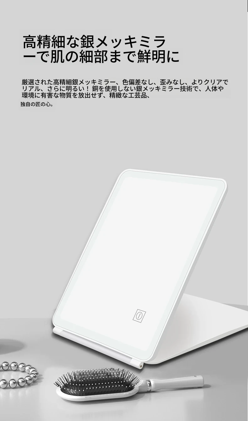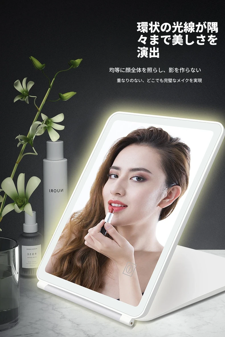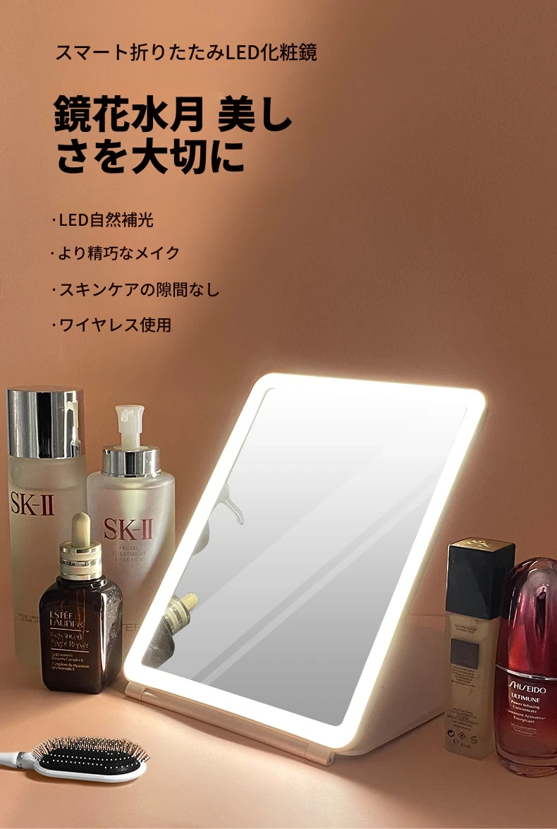 LEDライト付きスマート折りたたみ化粧ミラー|男性向け・学生の寮にも最適な便利な卓上ミラー|美しいメイクをサポートするおしゃれなアイテム!