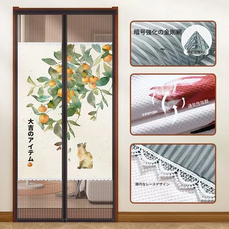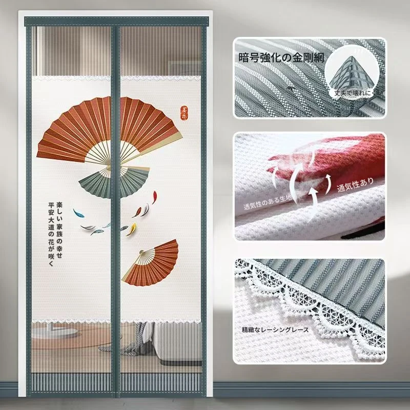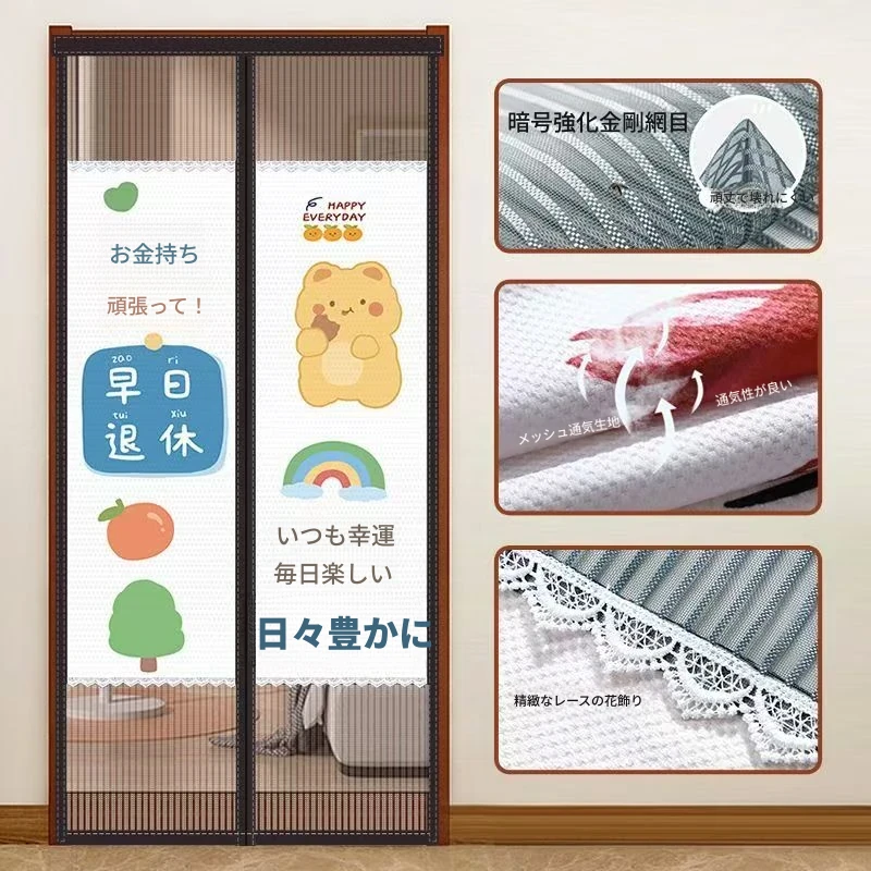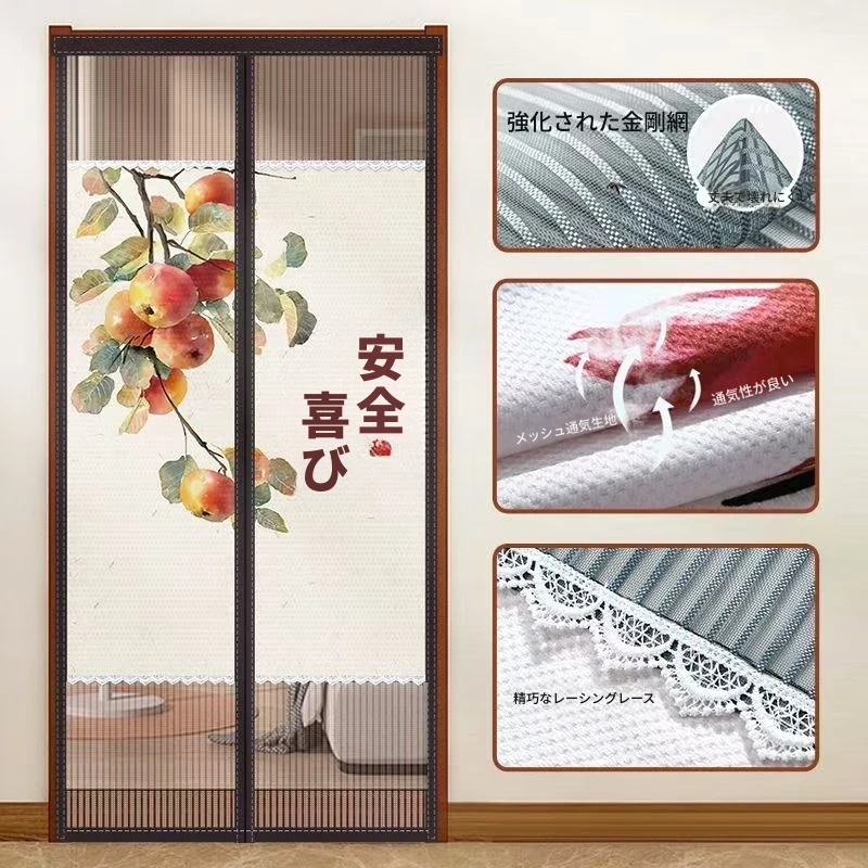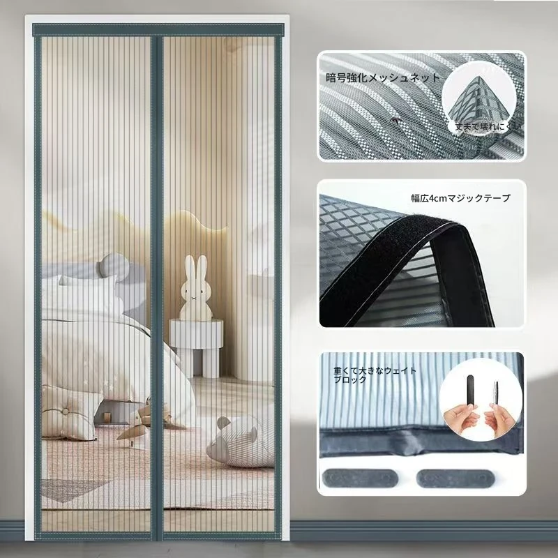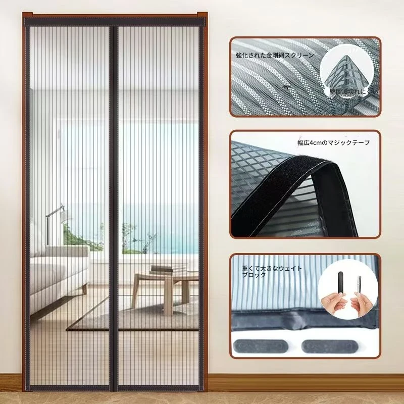 蚊を防ぐ!プライバシーと通気性を兼ね備えたマグネット式ドアカーテン。穴あけ不要のマジックテープで簡単設置!寝室の仕切りにも最適な家庭用メッシュ蚊よけカーテン。快適な空間を手に入れよう!