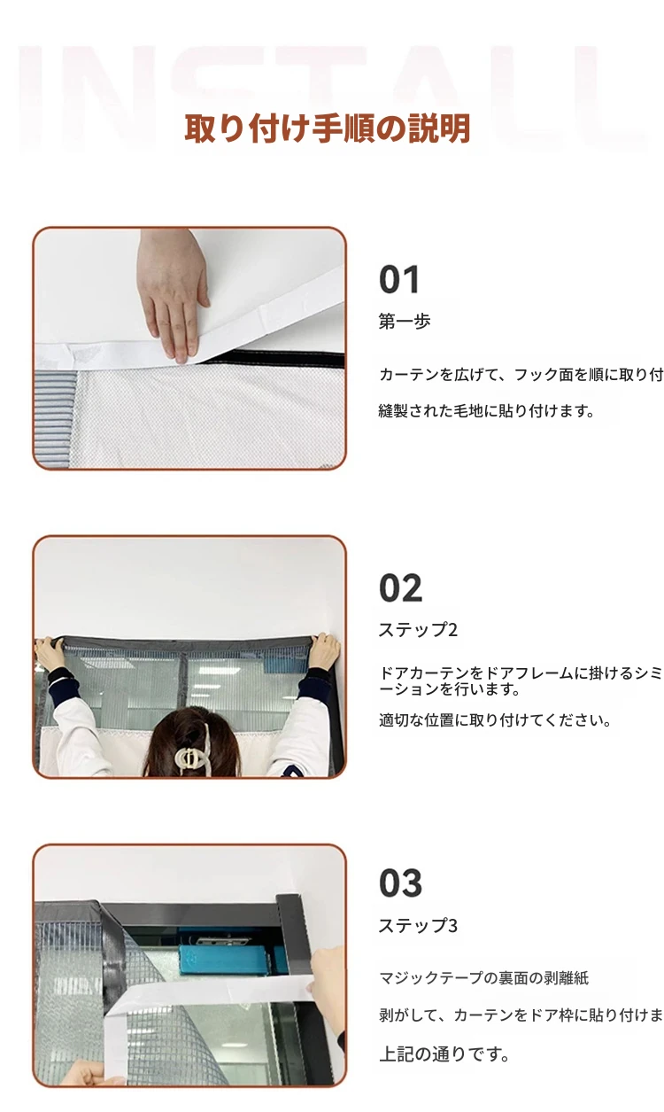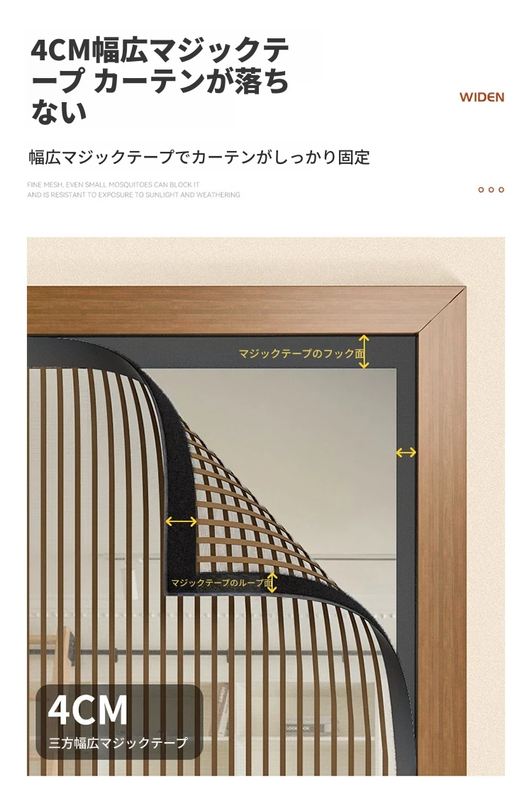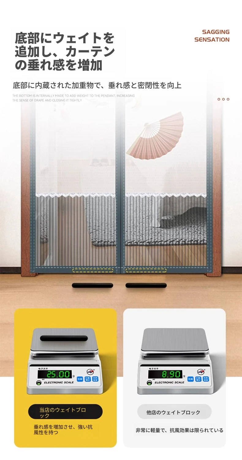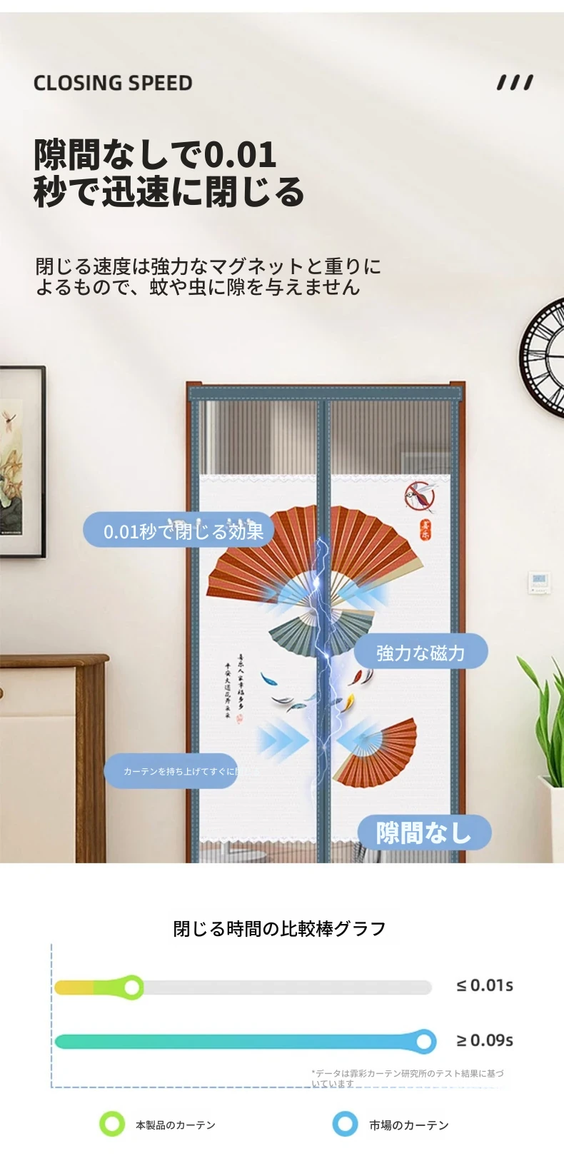 蚊を防ぐ!プライバシーと通気性を兼ね備えたマグネット式ドアカーテン。穴あけ不要のマジックテープで簡単設置!寝室の仕切りにも最適な家庭用メッシュ蚊よけカーテン。快適な空間を手に入れよう!