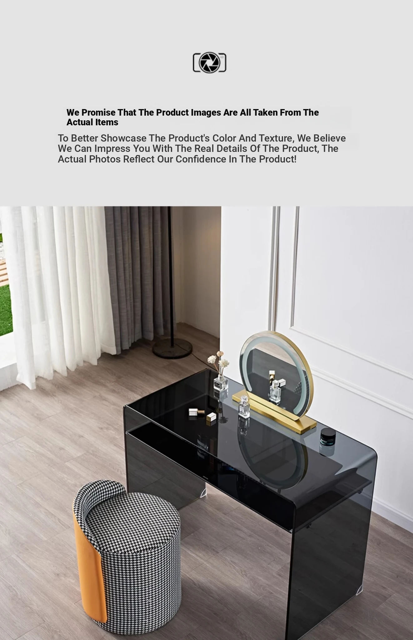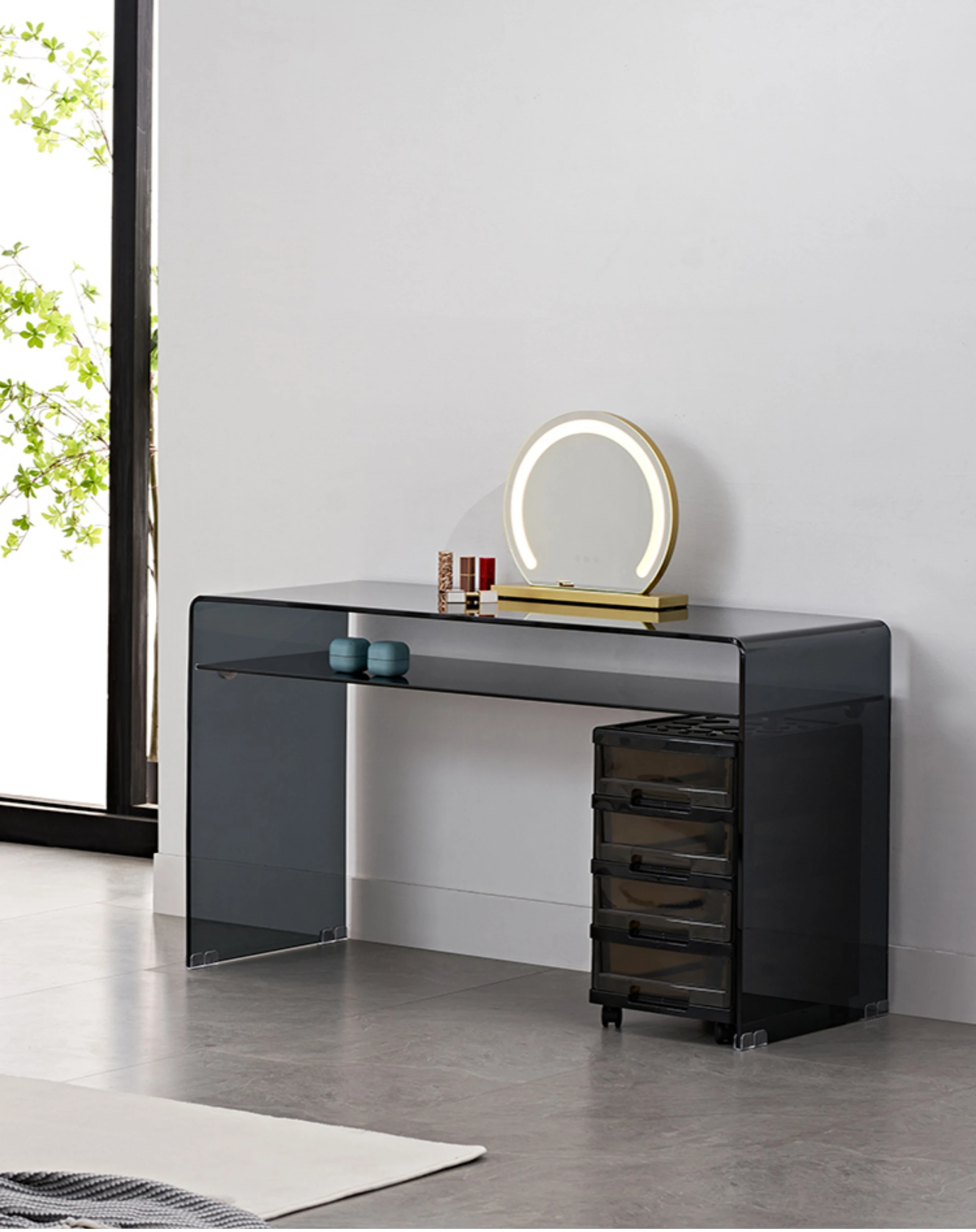 Mini Luxe Compact Makeup Vanity Table - Modern Simple Design for Small Spaces, Perfect for Bedrooms, Inspired by Trendy Instagram Aesthetics.
