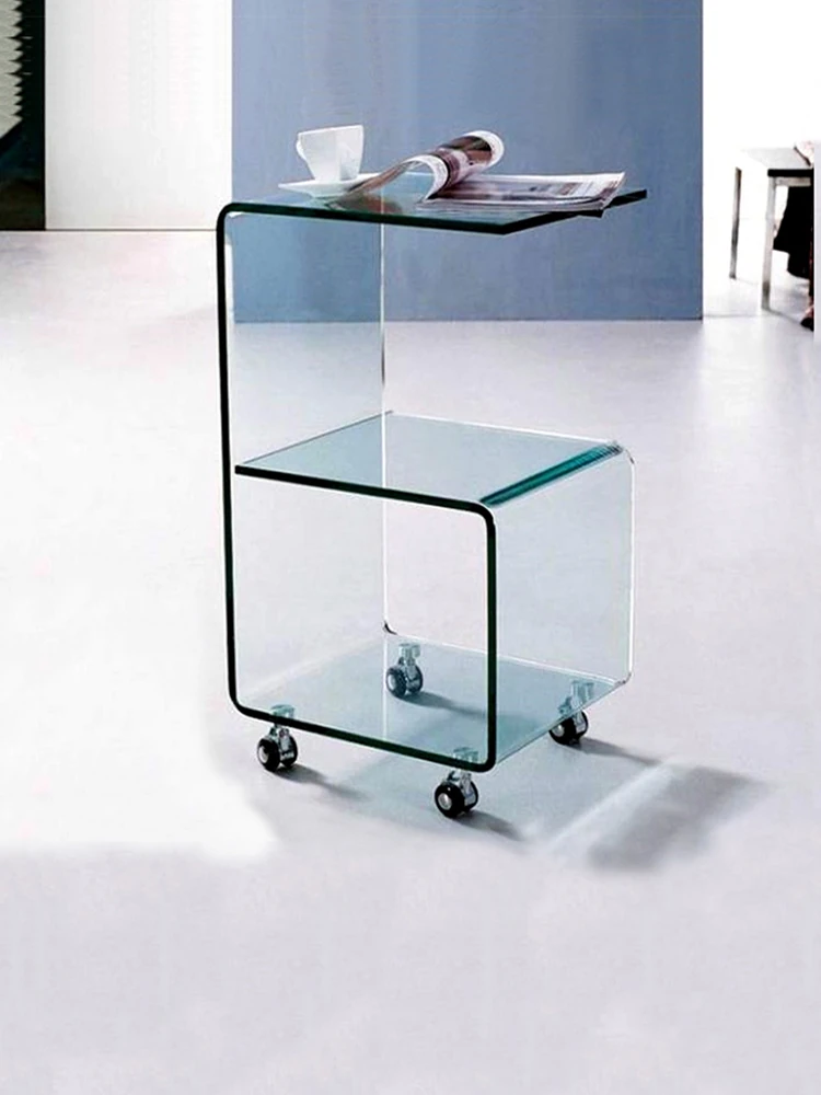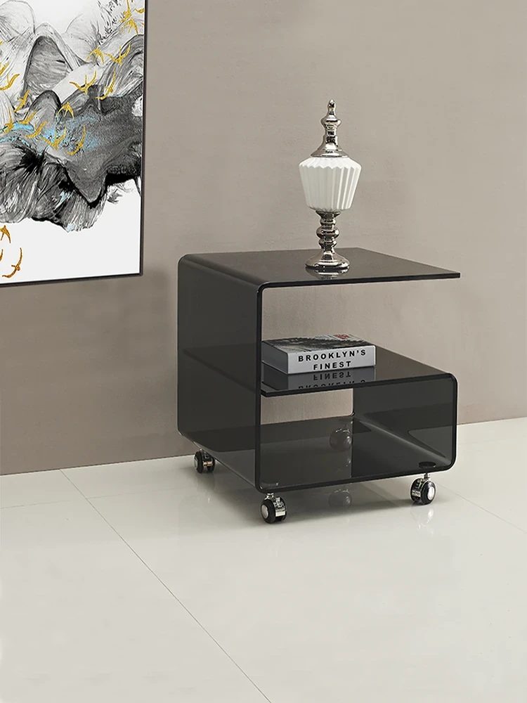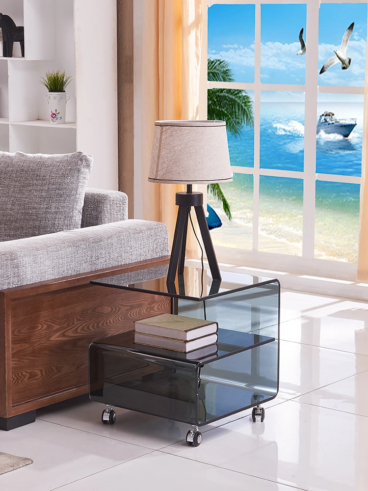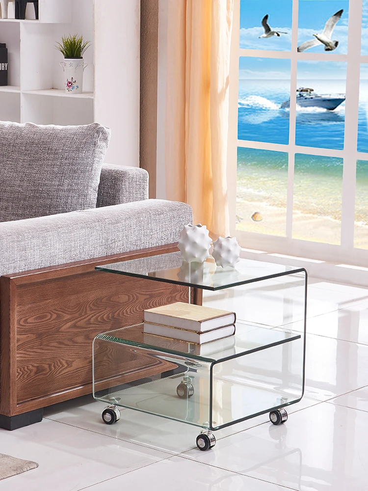 Modern Minimalist Curved Glass Coffee Table - Compact Square Side Table for Living Room, Phone Stand, and Corner Storage, Perfect for Small Spaces