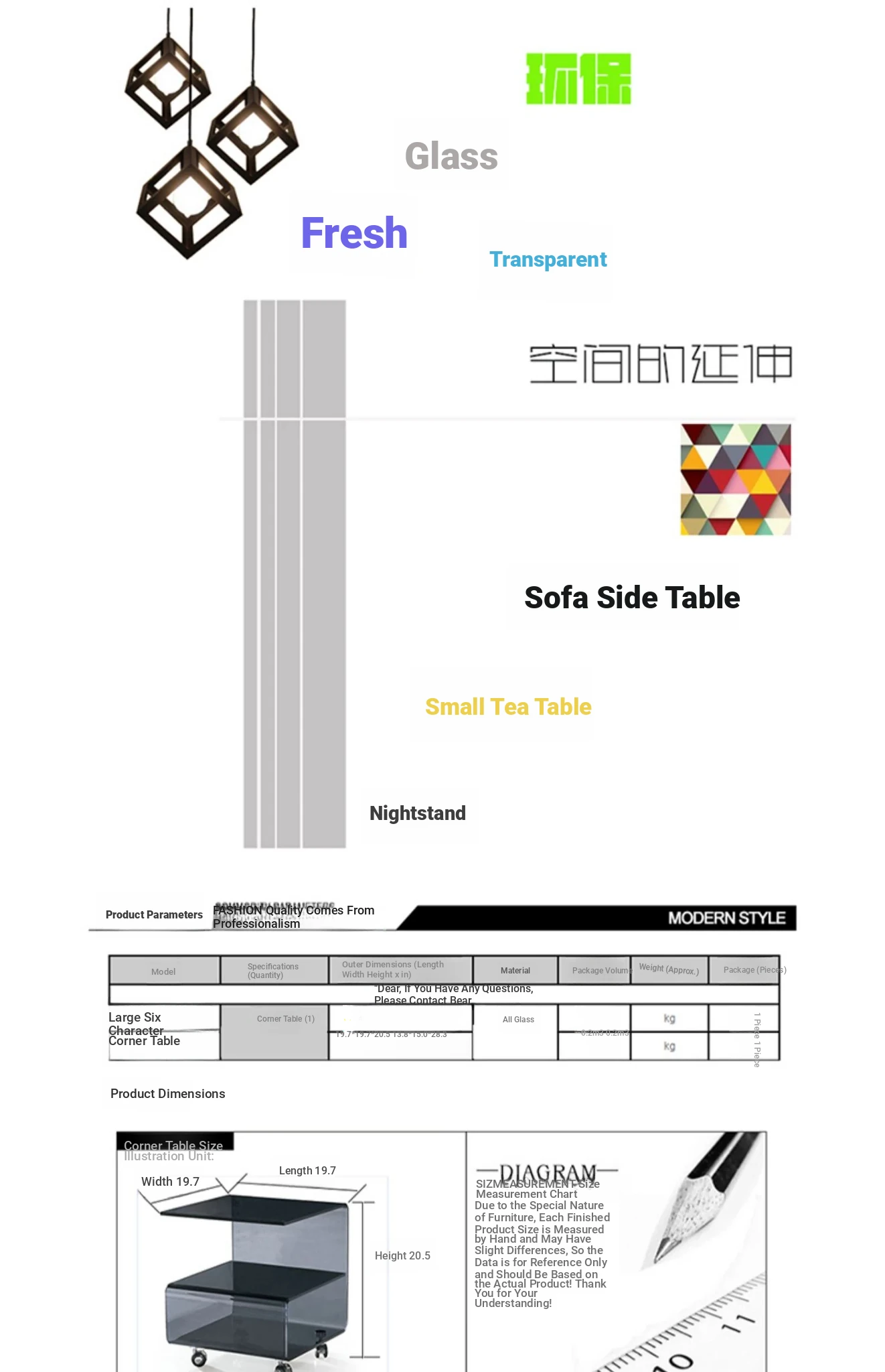 19.69in*19.69in*20.47in black glass (Big Six characters)