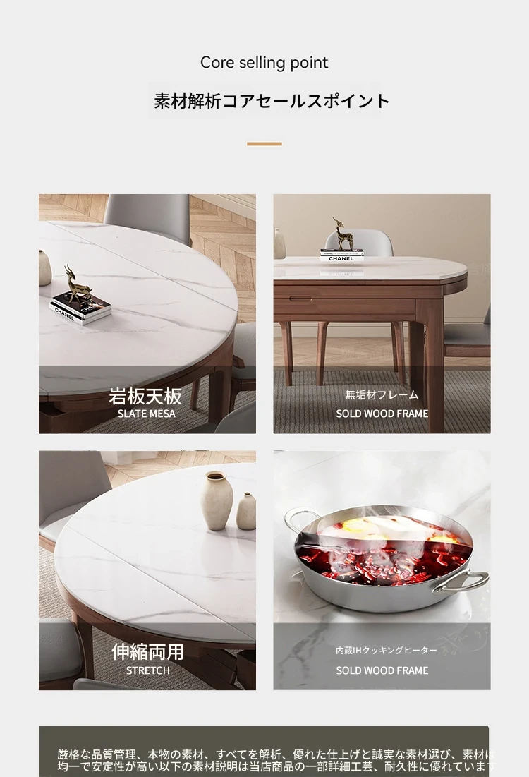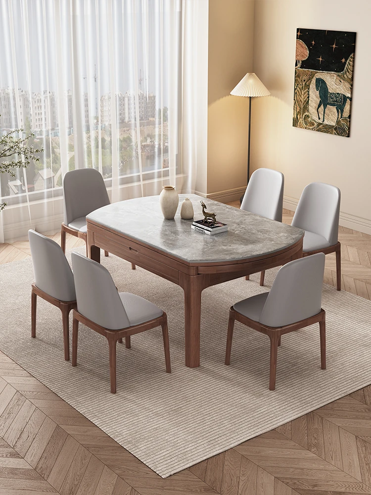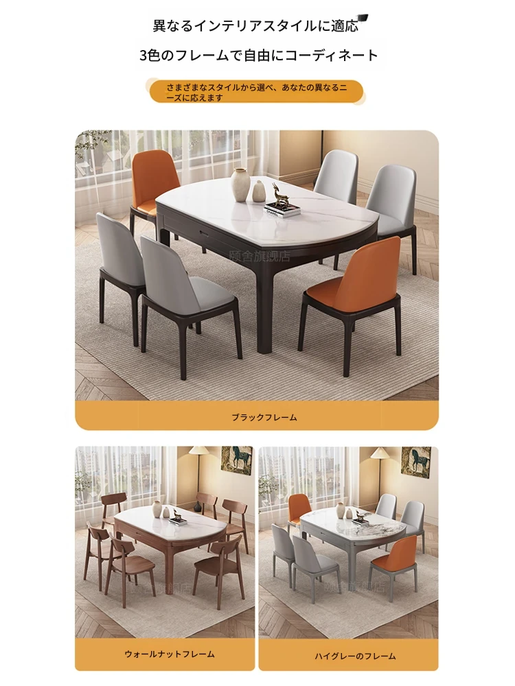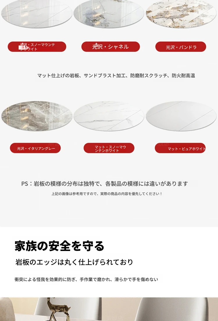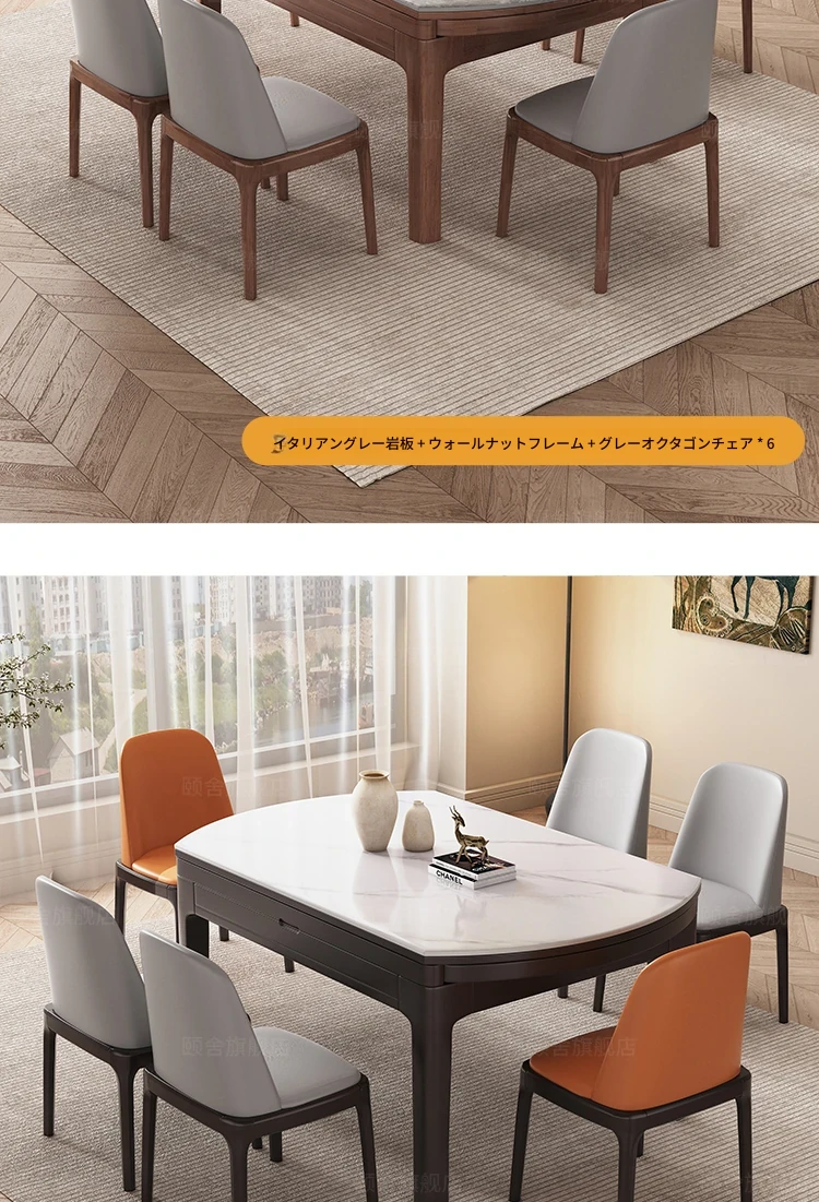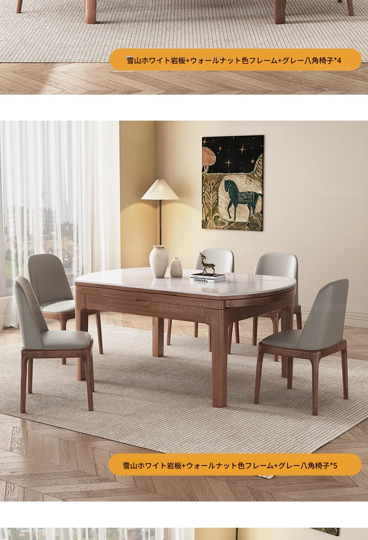 モダンでシンプルなデザインの岩板ダイニングテーブルと椅子のセット!軽奢な雰囲気を持ち、小さなスペースにもぴったり。伸縮可能で折りたたみ式の円形テーブルは、実用性とスタイルを兼ね備えています。家族や友人との特別なひとときを楽しむための完璧な選択です!