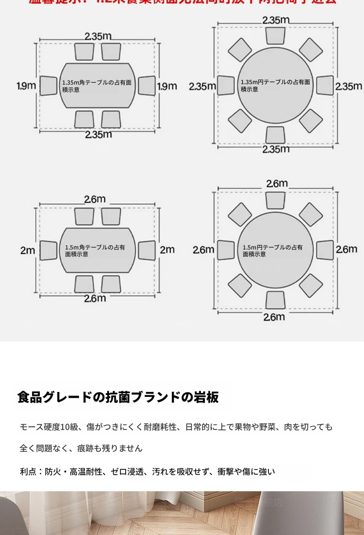 1.2メートルダイニングテーブル+6椅子【連続模様抗菌岩板/4本レール】