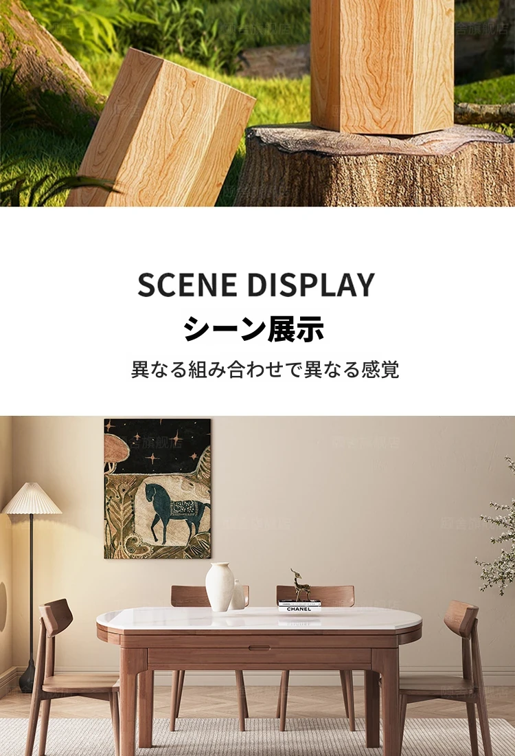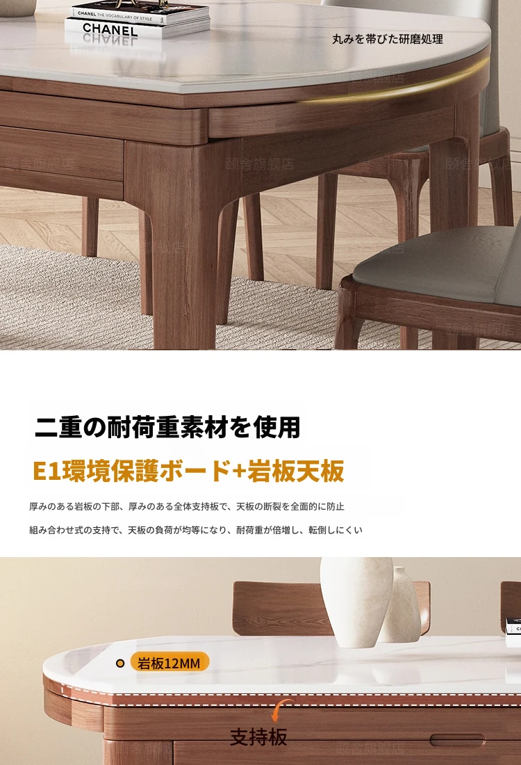 1.5メートルダイニングテーブル+8椅子【連続模様抗菌岩板/4本レール】