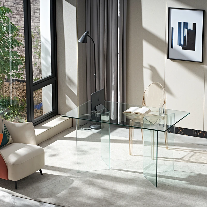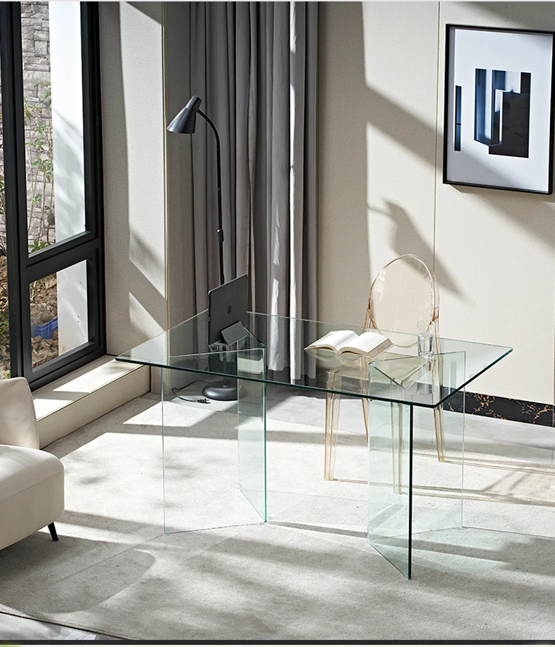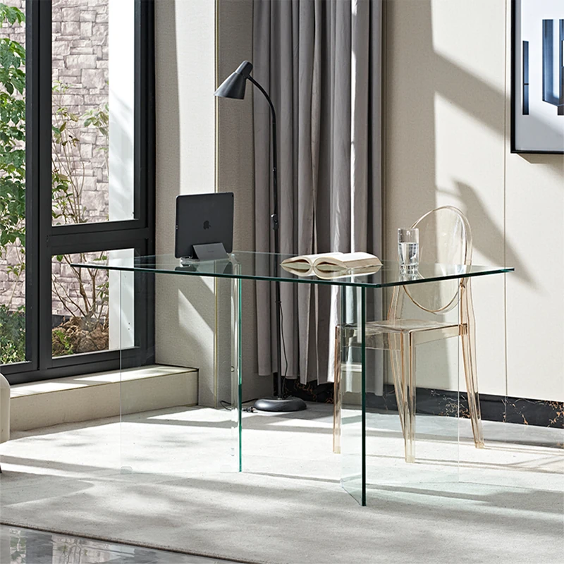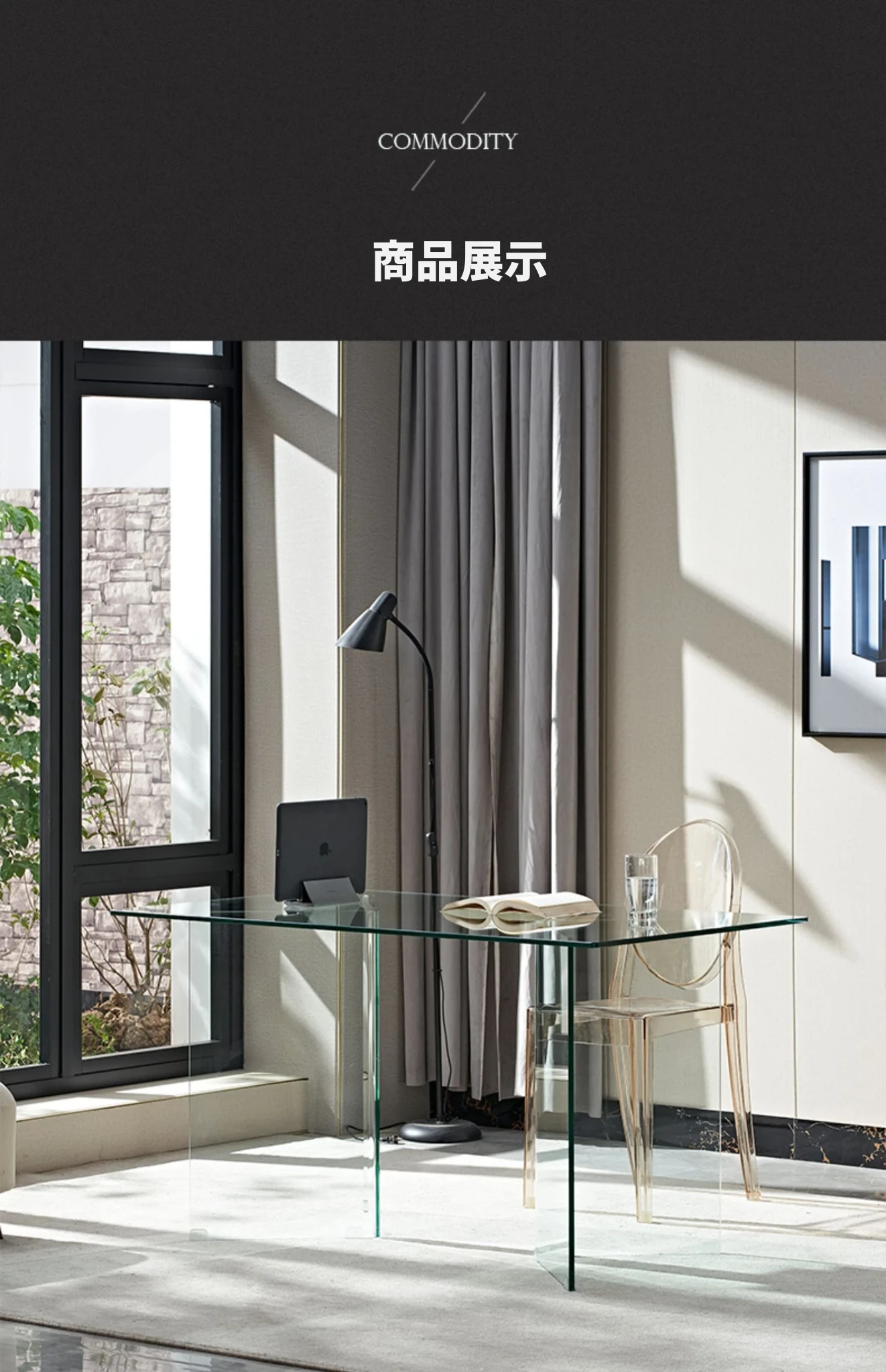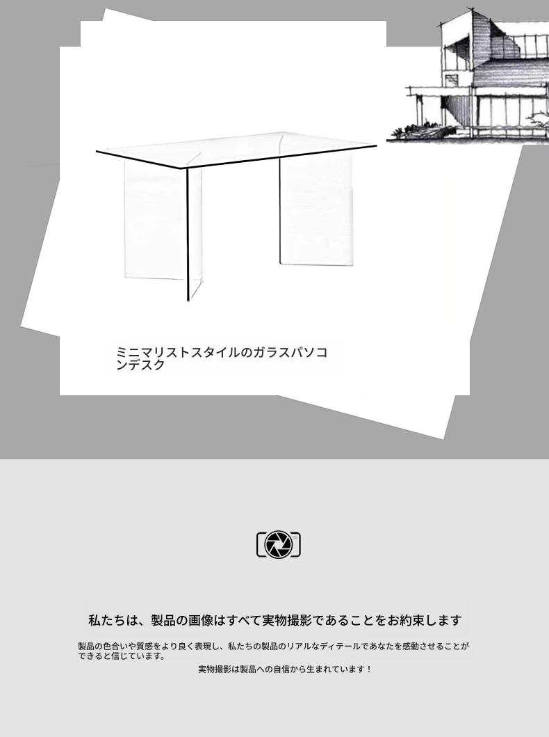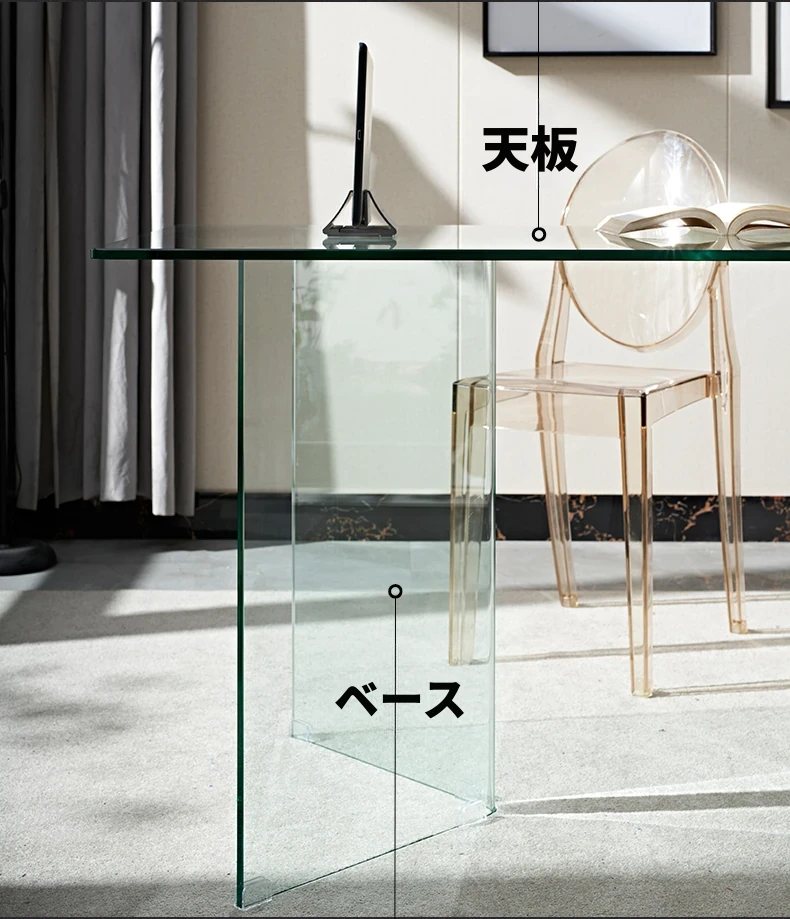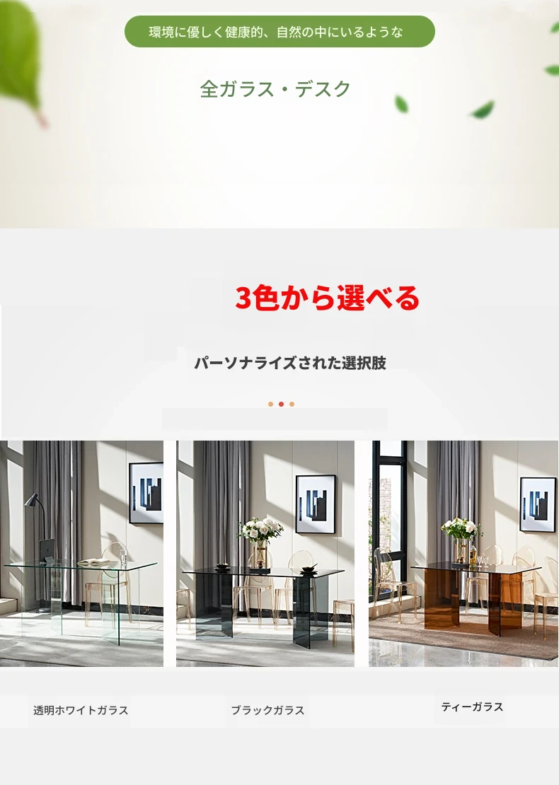強化ガラス製オフィスデスク|シンプルで現代的なデザインのホームワークテーブル|エレガントな社長デスク|会議に最適なロングテーブル【快適な作業空間を提供】