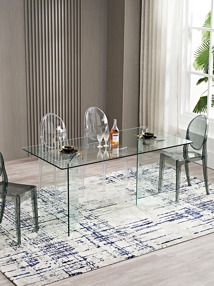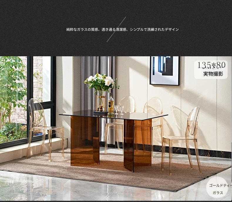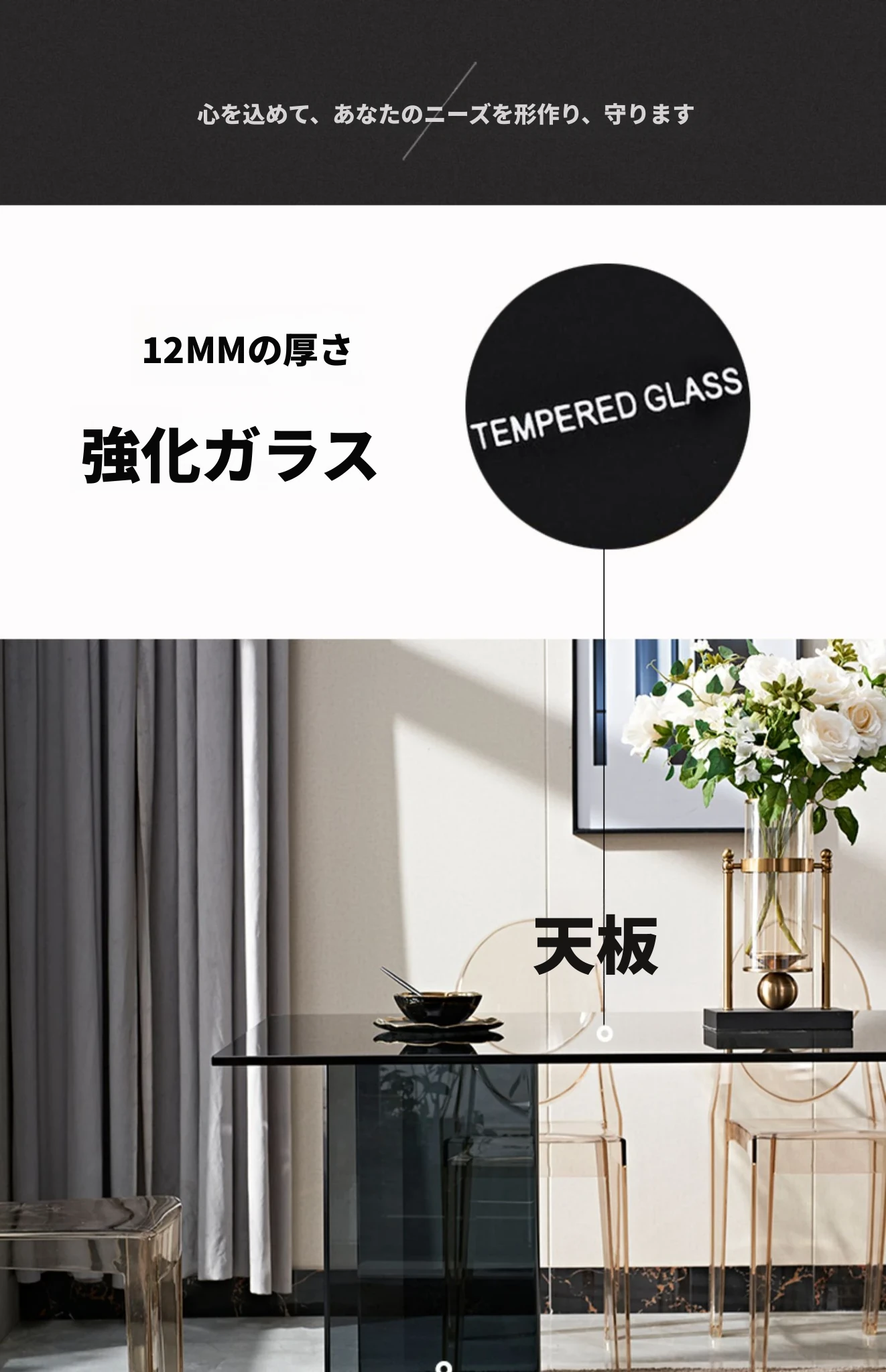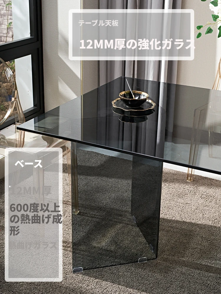 北欧スタイルの強化ガラスダイニングテーブル|小さなスペースにもぴったり!モダンでシンプルな長方形デザイン|家庭用・商業用に最適な食卓セット、快適な食事空間を演出します!