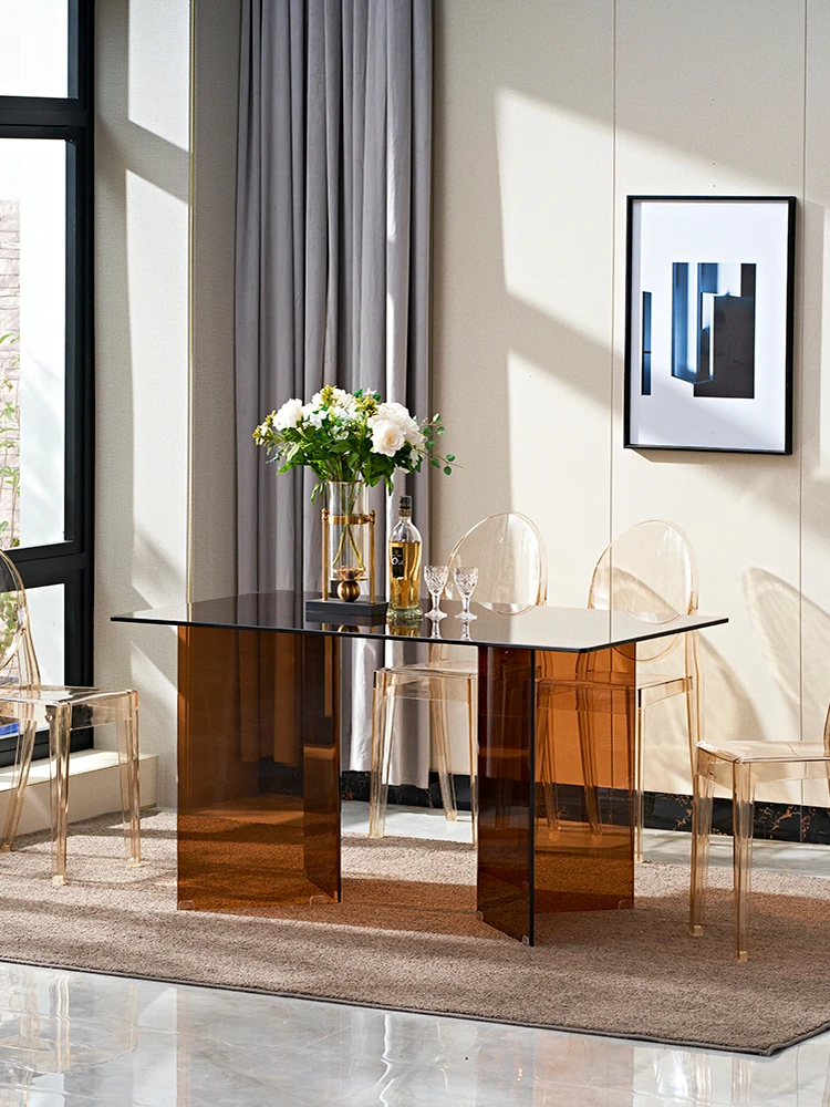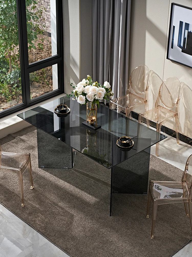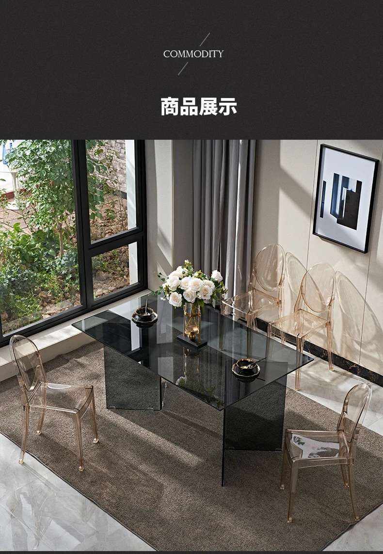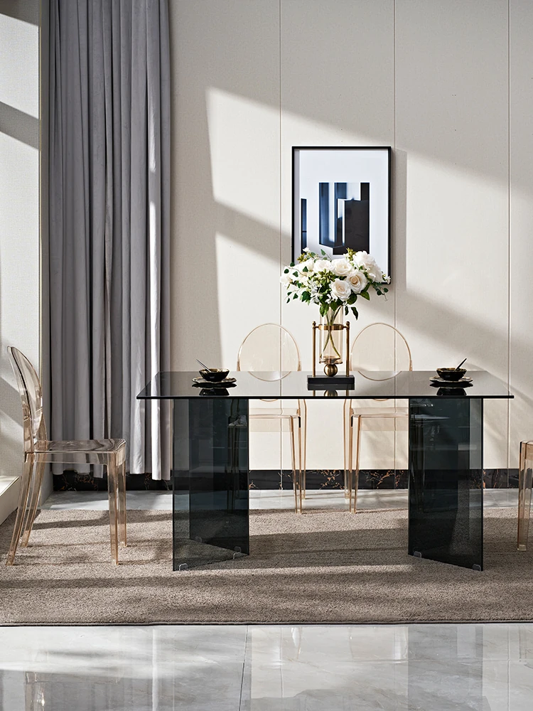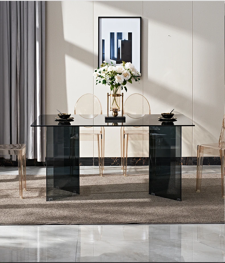 北欧スタイルの強化ガラスダイニングテーブル|小さなスペースにもぴったり!モダンでシンプルな長方形デザイン|家庭用・商業用に最適な食卓セット、快適な食事空間を演出します!