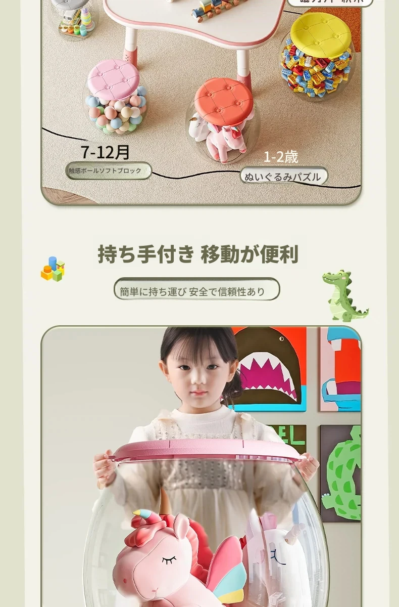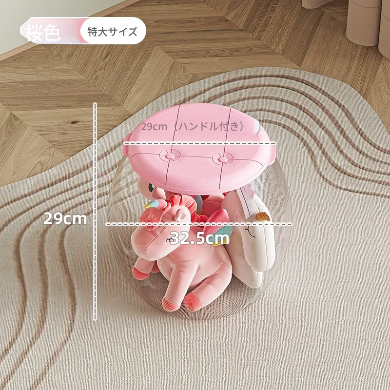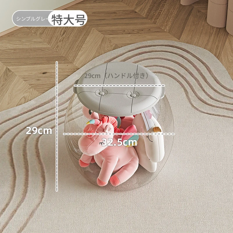 ぬいぐるみ収納バケツ ふわふわおもちゃ収納スツール クリア整理ボックス おしゃれな収納の必需品!お部屋をスッキリ整頓し、かわいいインテリアにもなる便利グッズ!