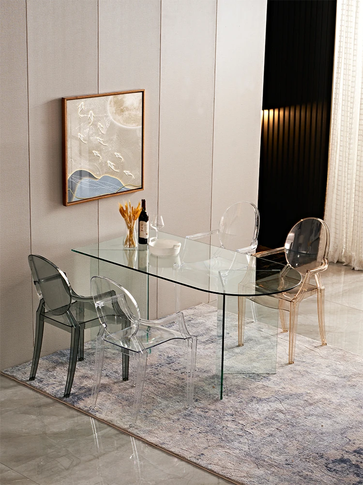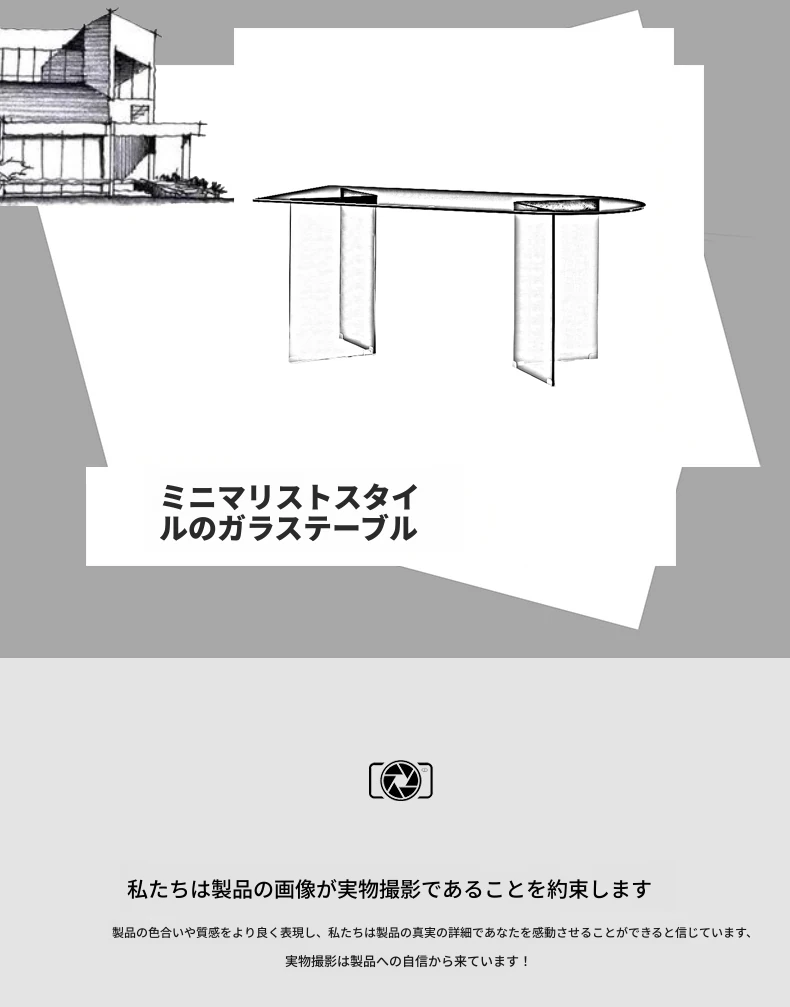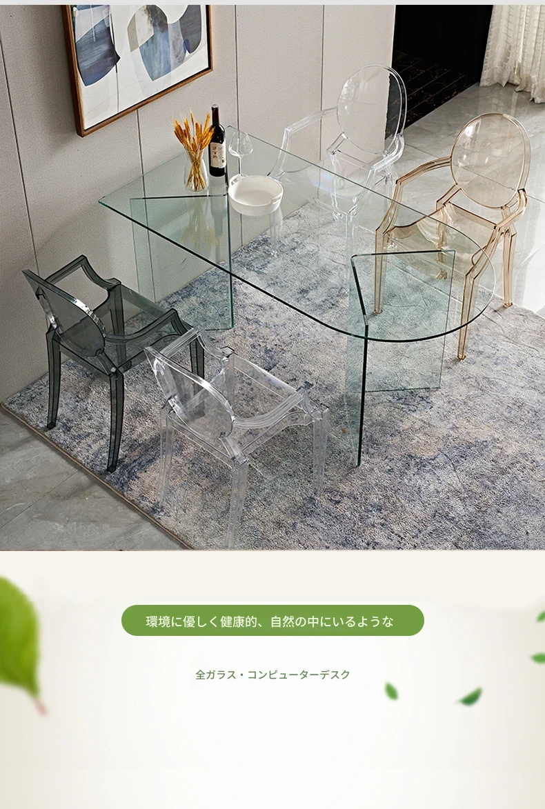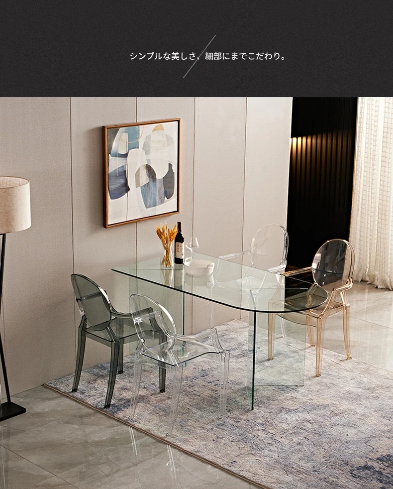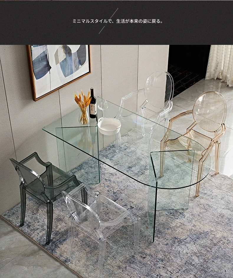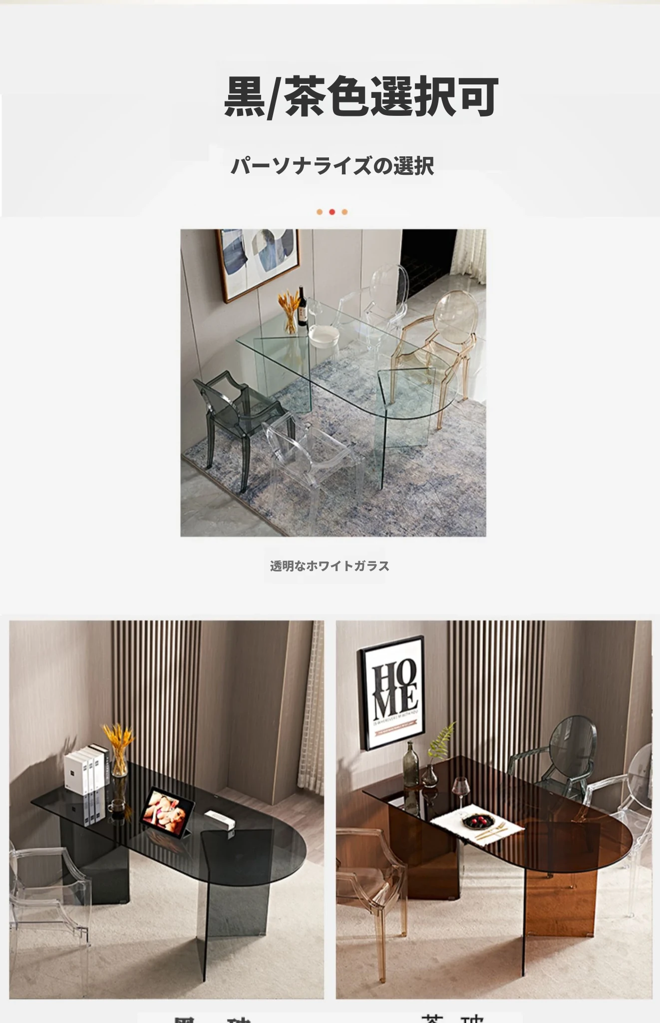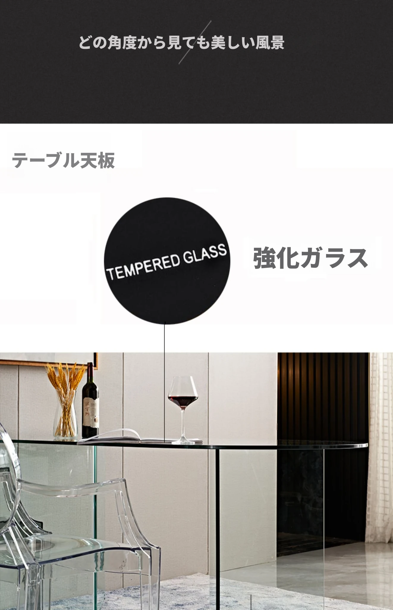 人気の強化ガラス島型ダイニングテーブル - 小型住宅に最適なモダンでシンプルなデザイン、軽やかなラグジュアリー感を演出。長方形で食事を楽しむのにぴったり!