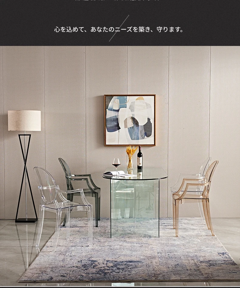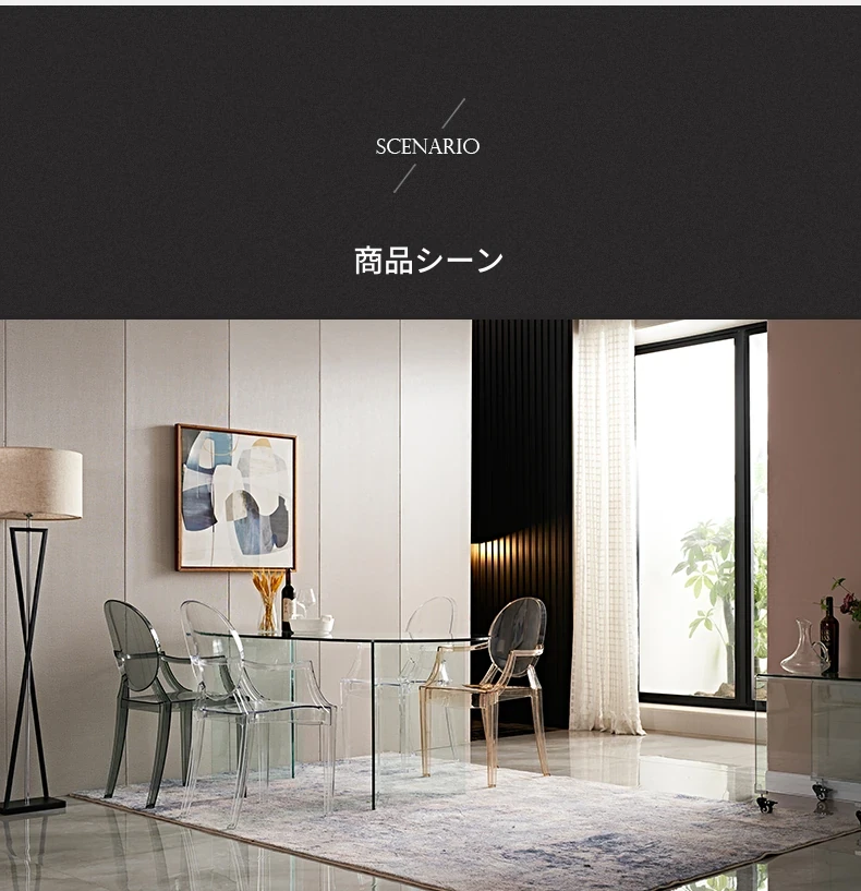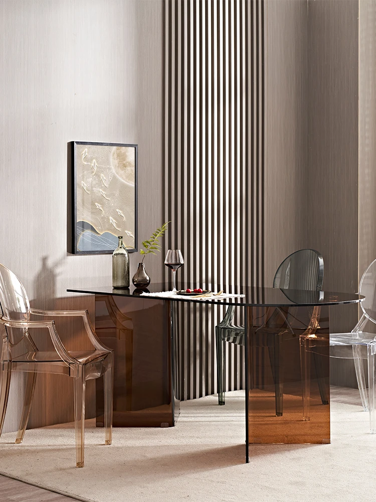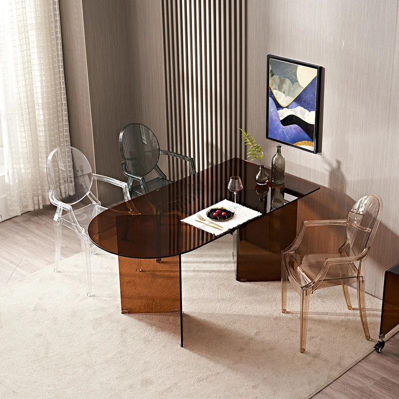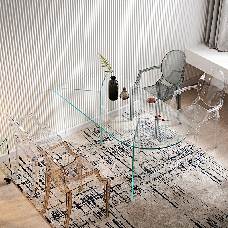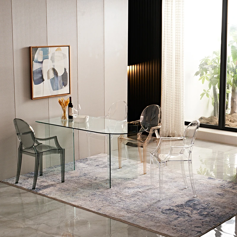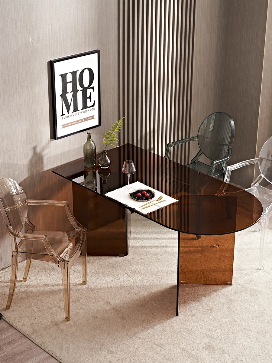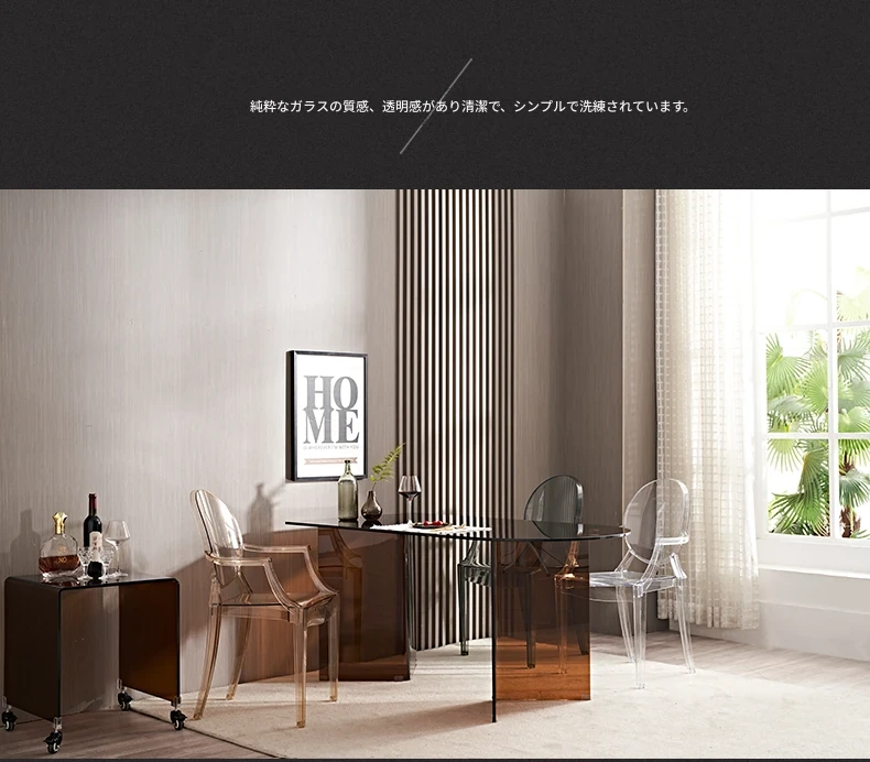 人気の強化ガラス島型ダイニングテーブル - 小型住宅に最適なモダンでシンプルなデザイン、軽やかなラグジュアリー感を演出。長方形で食事を楽しむのにぴったり!