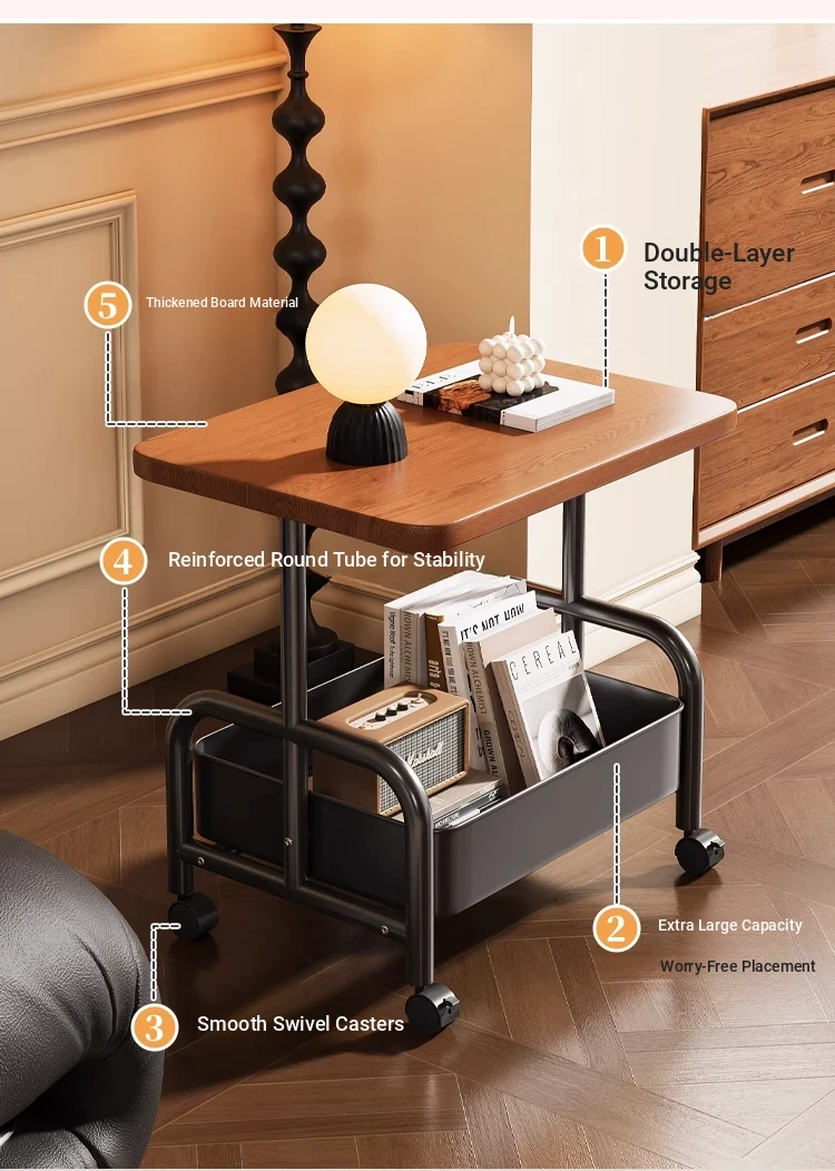 移動可能なサイドテーブル|おしゃれなデザインで、リビングや寝室に最適!パソコンデスクやナイトテーブルとしても使える便利なアイテム。限られたスペースでも大活躍のコンパクトな収納付きサイドテーブルです。