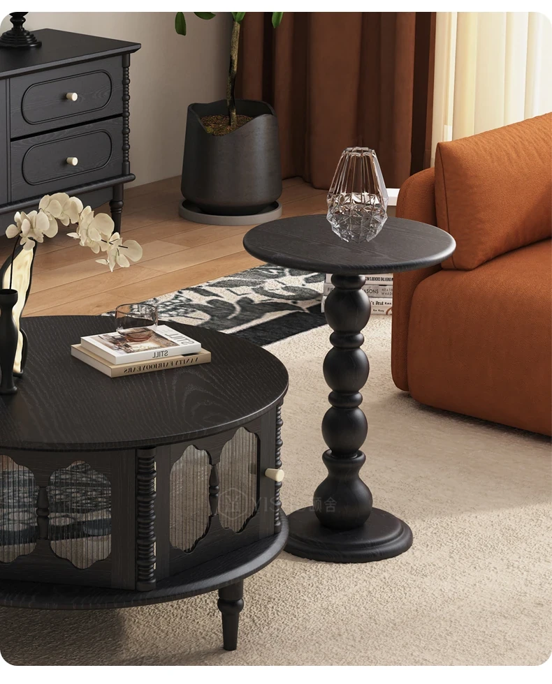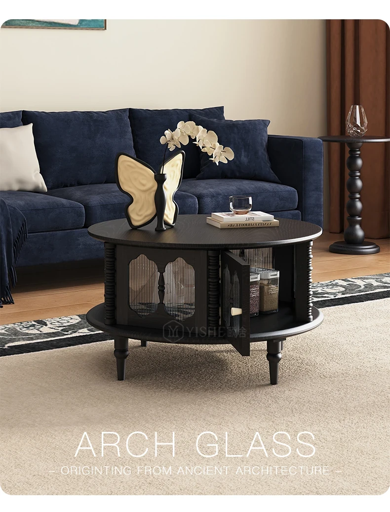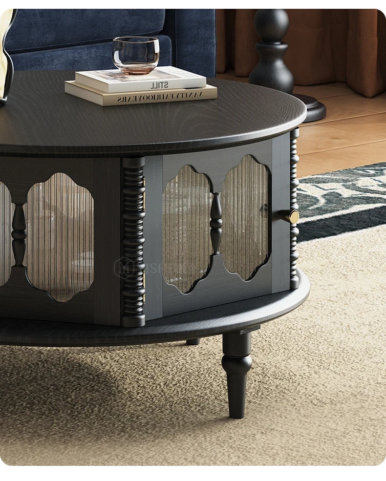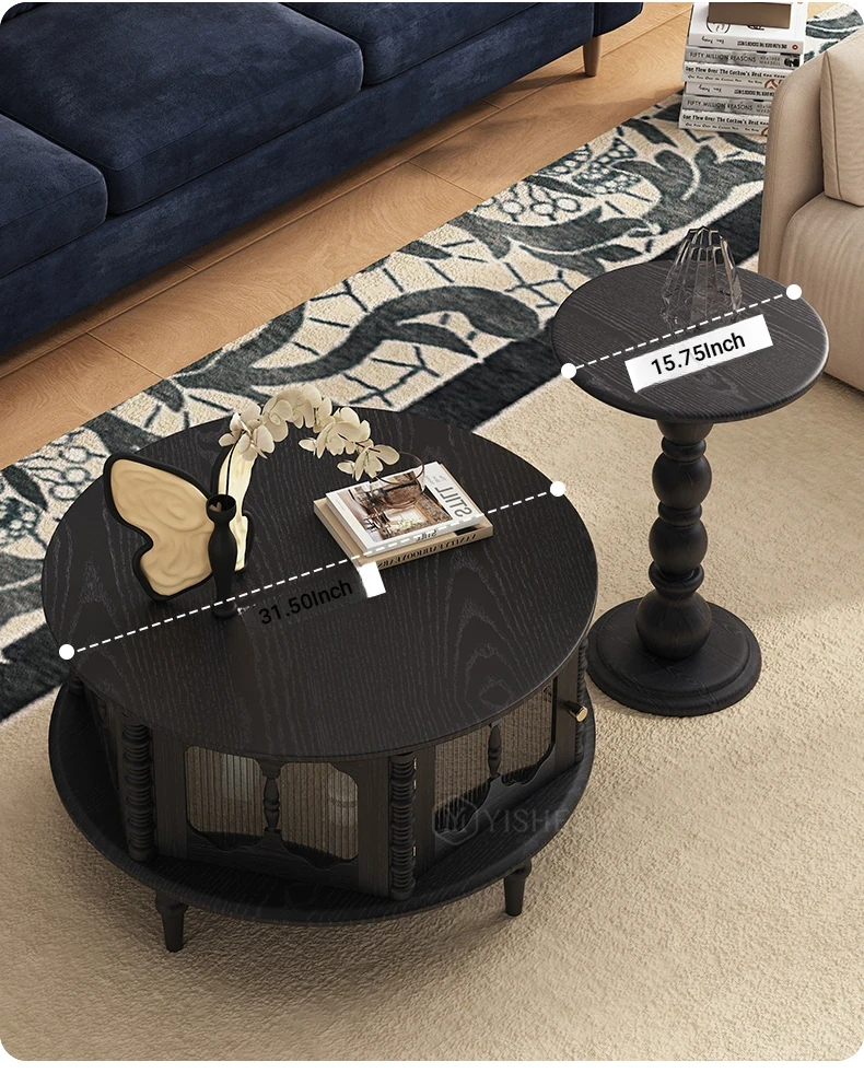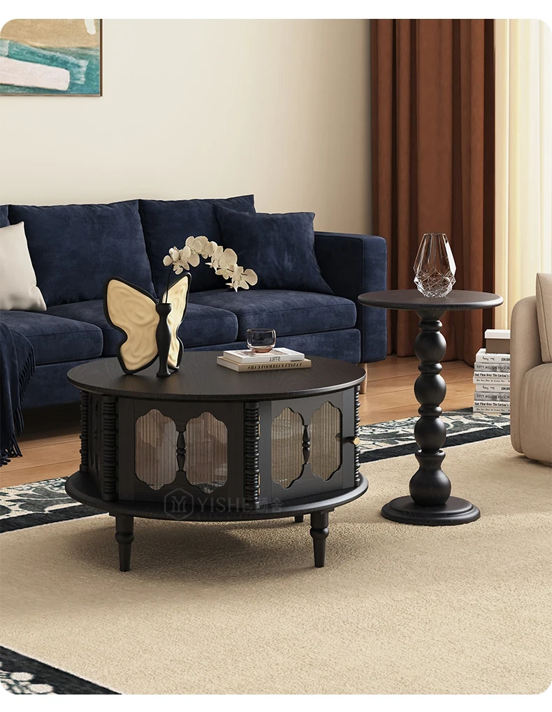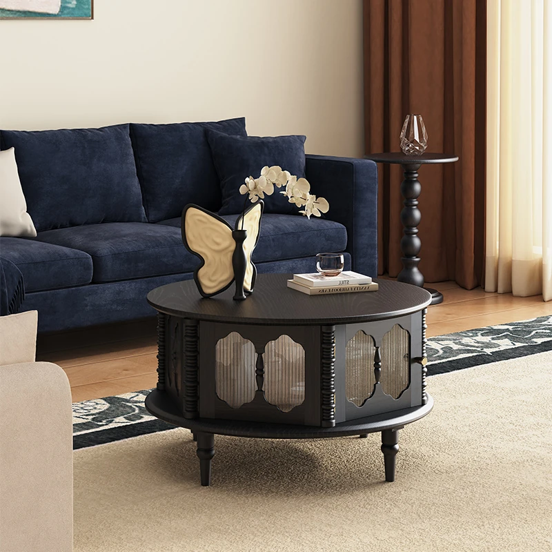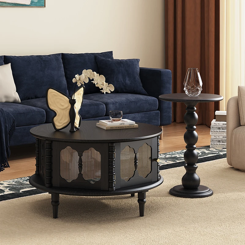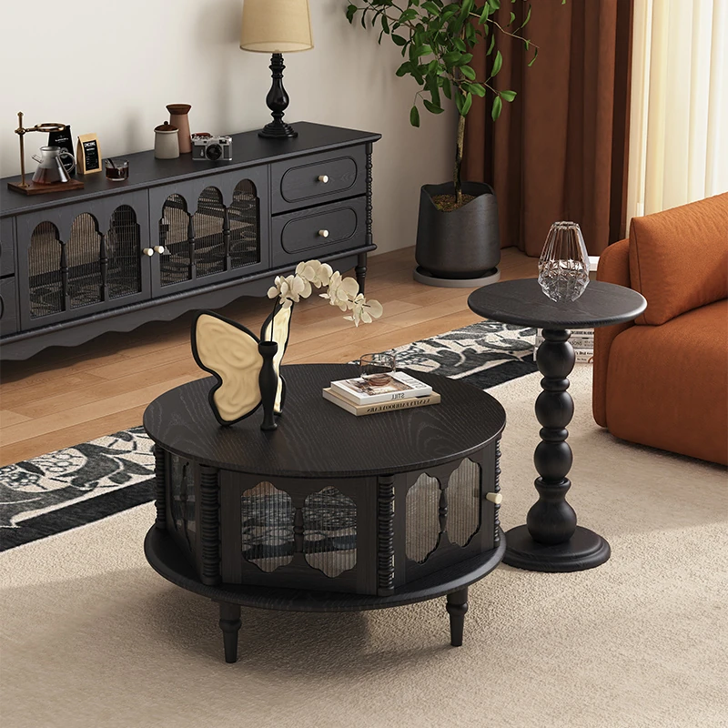 Vintage French Solid Wood Coffee Table for Small Spaces - Stylish Round Tea Table and TV Stand Combo for Cozy Living Rooms