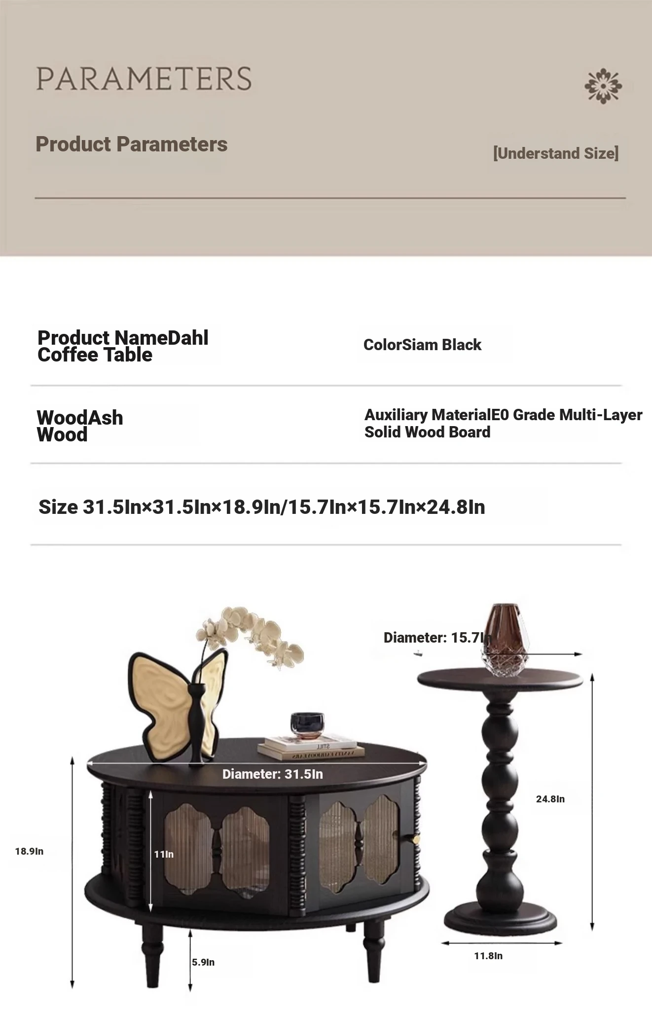 Dahl coffee table +78.74 ininoison TV cabinet diameter 31.50in