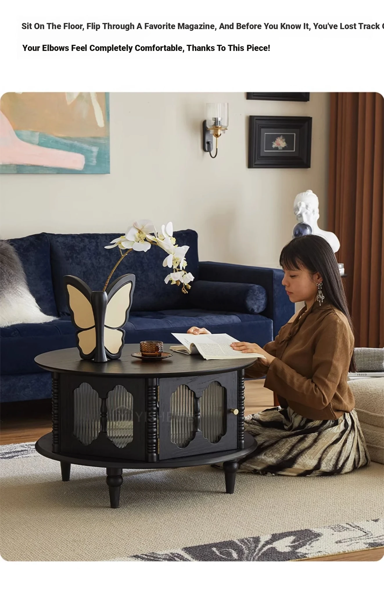 Dahl combination coffee table [Siam Black] diameter 31.50in