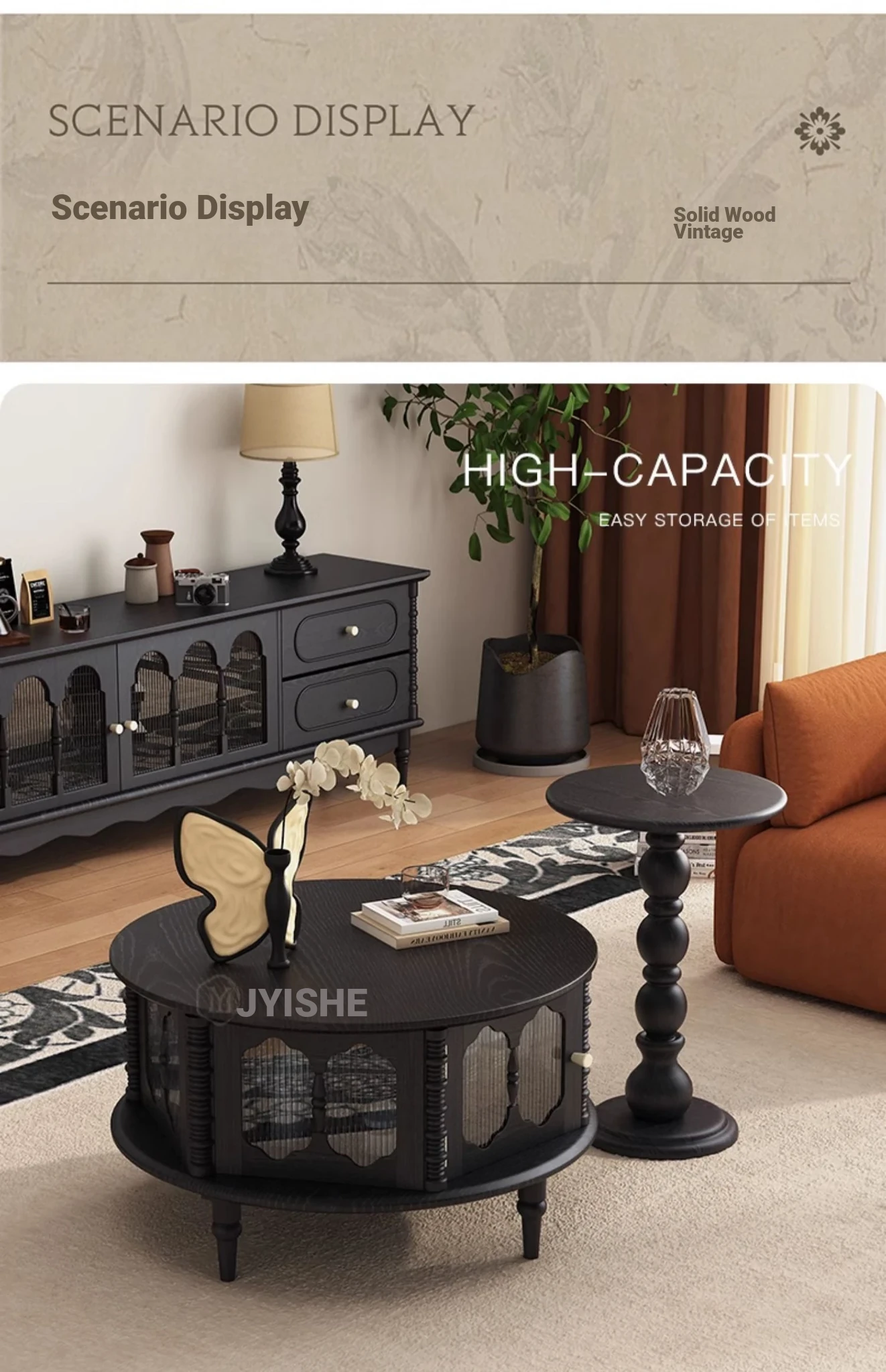 Carol combination coffee table [Retro double color] diameter 35.43in