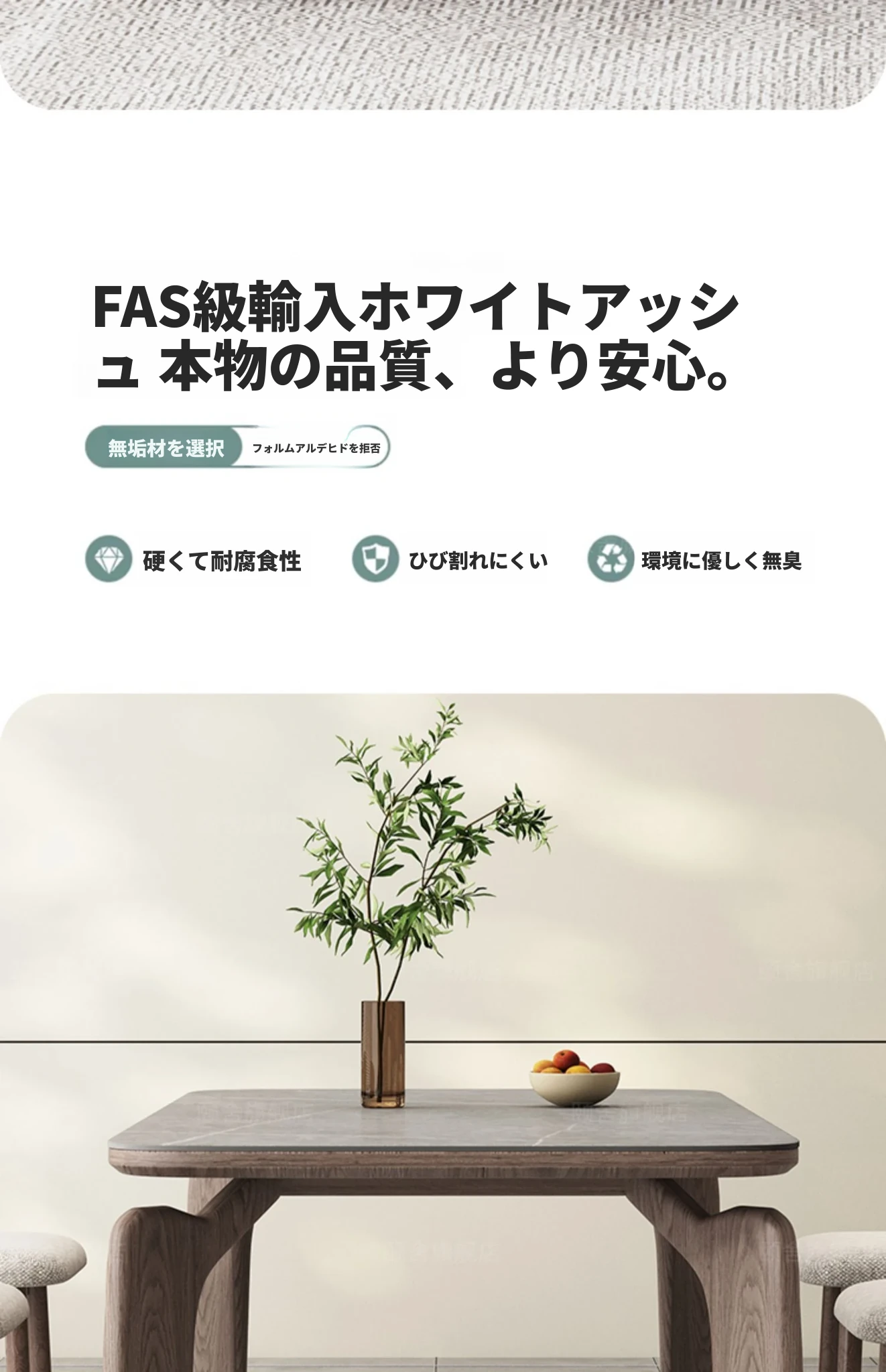 侘寂の美が漂う2024年新作!高級感あふれるホワイトアッシュ無垢材使用の北欧スタイル小型ダイニングテーブル&チェアセット。洗練されたデザインで、あなたの食卓を特別な空間に変えます。